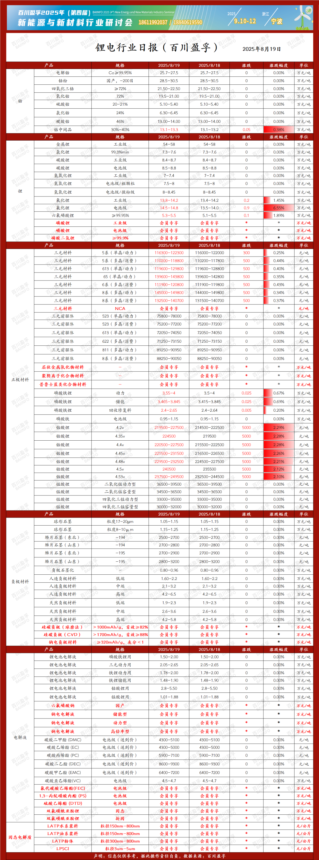 百川盈孚锂电行业数据迎来全新升级!此次升级在锂电行业信息板块中,特别新增了钠电相关以及固态电解质等前沿领域内容。诚邀各位行业同仁登录平台,探索更多专业资讯!