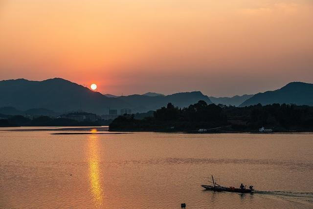 诗人纪昀在《富春至严陵山水甚佳》中写“斜阳流水推篷坐,翠色随人欲上船。”的绝美景色。