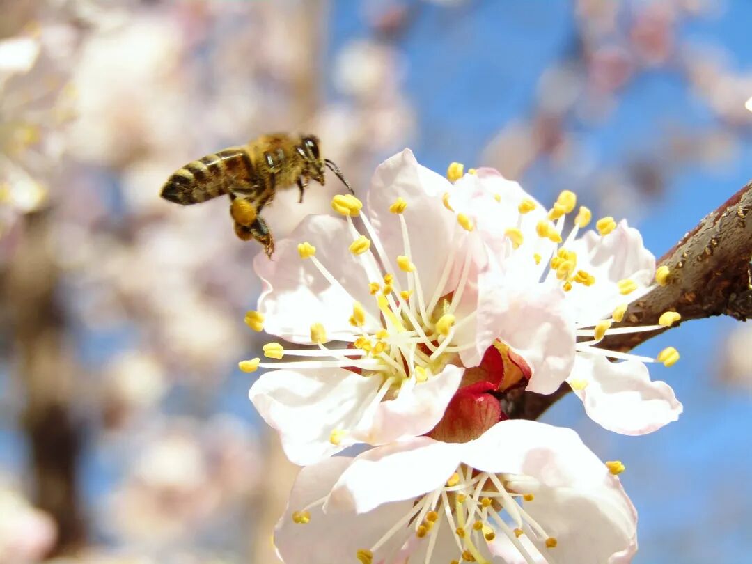 花下成千成百的蜜蜂嗡嗡地闹着,大小的蝴蝶飞来飞去。