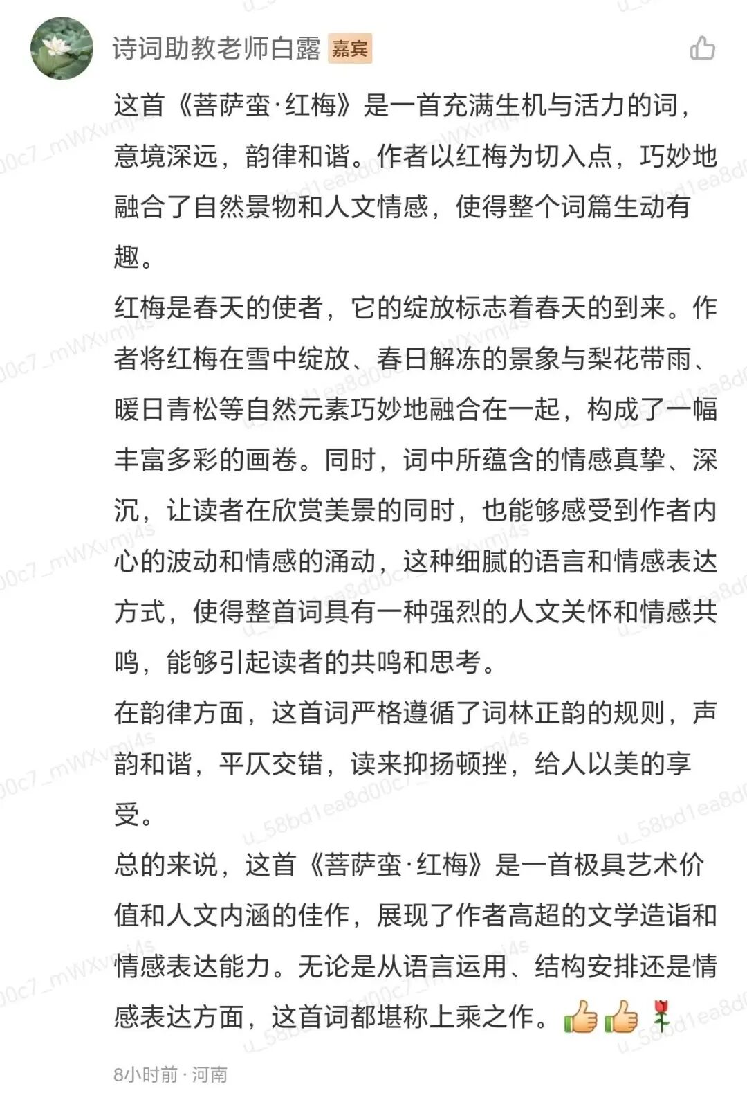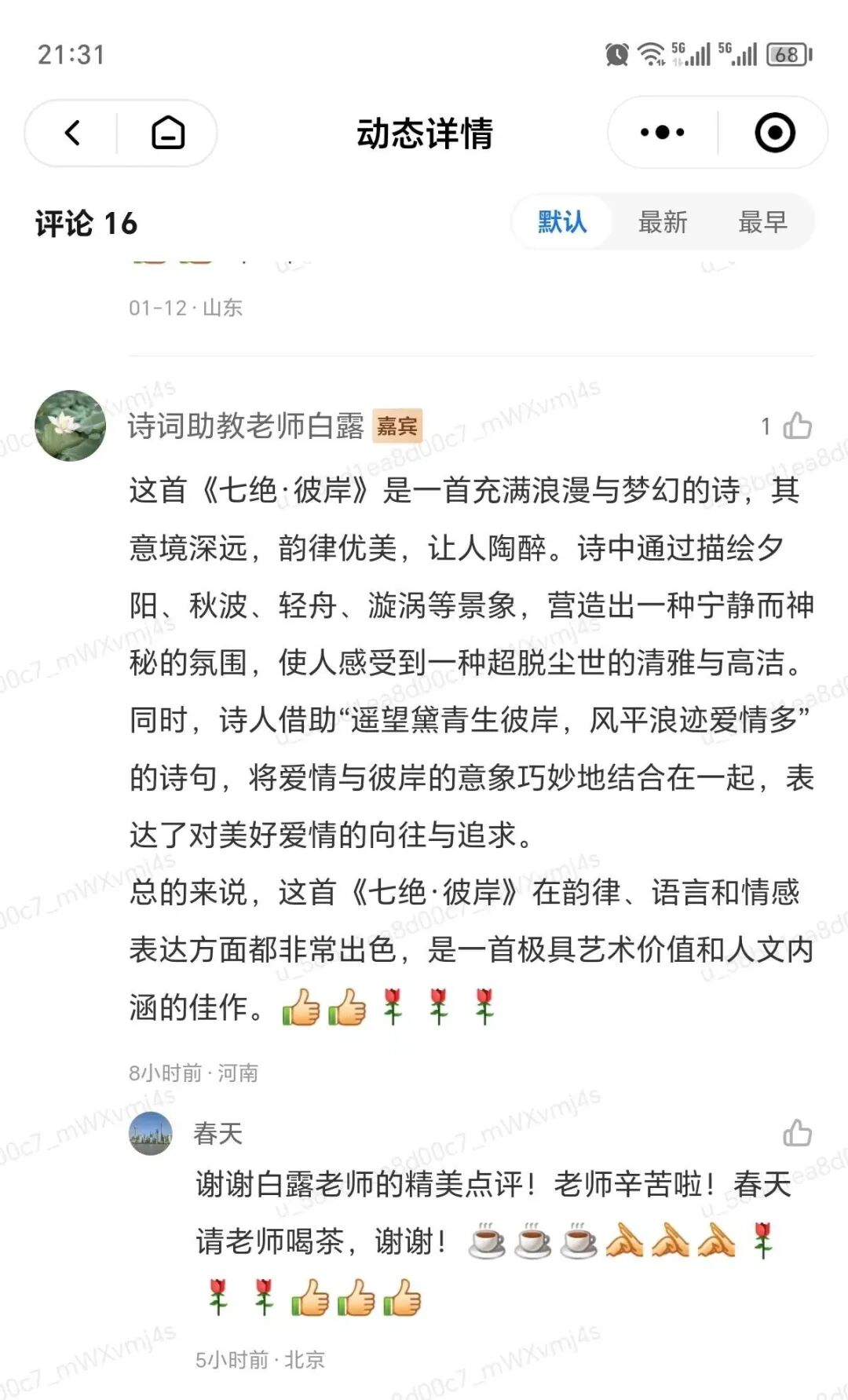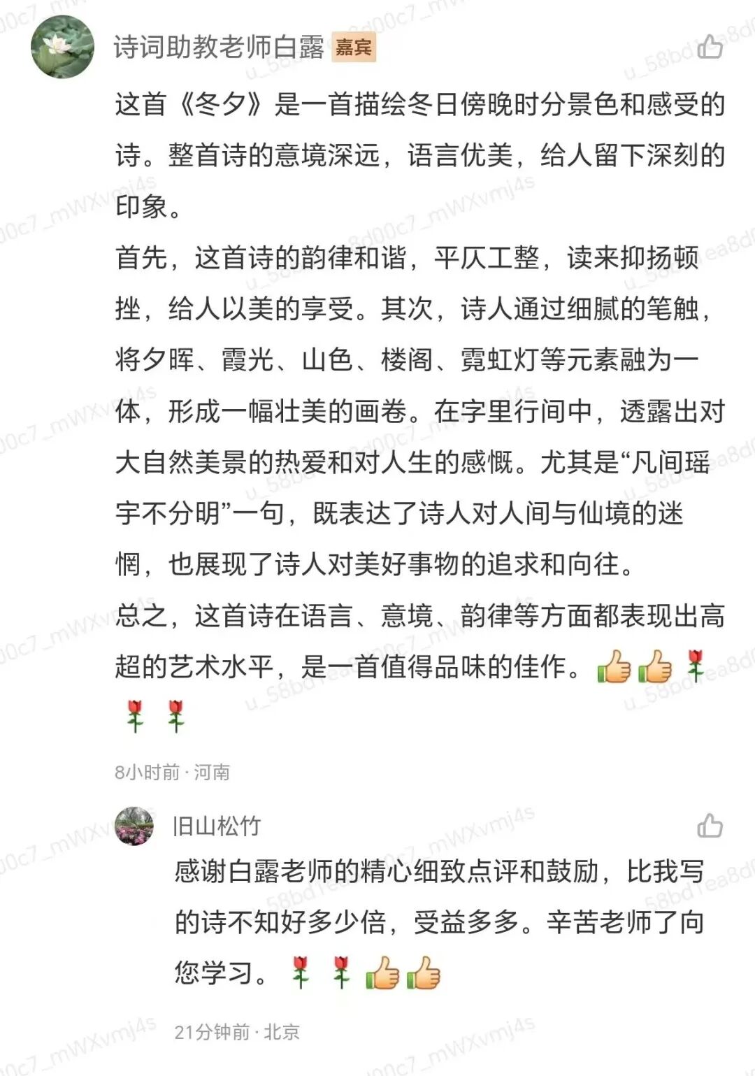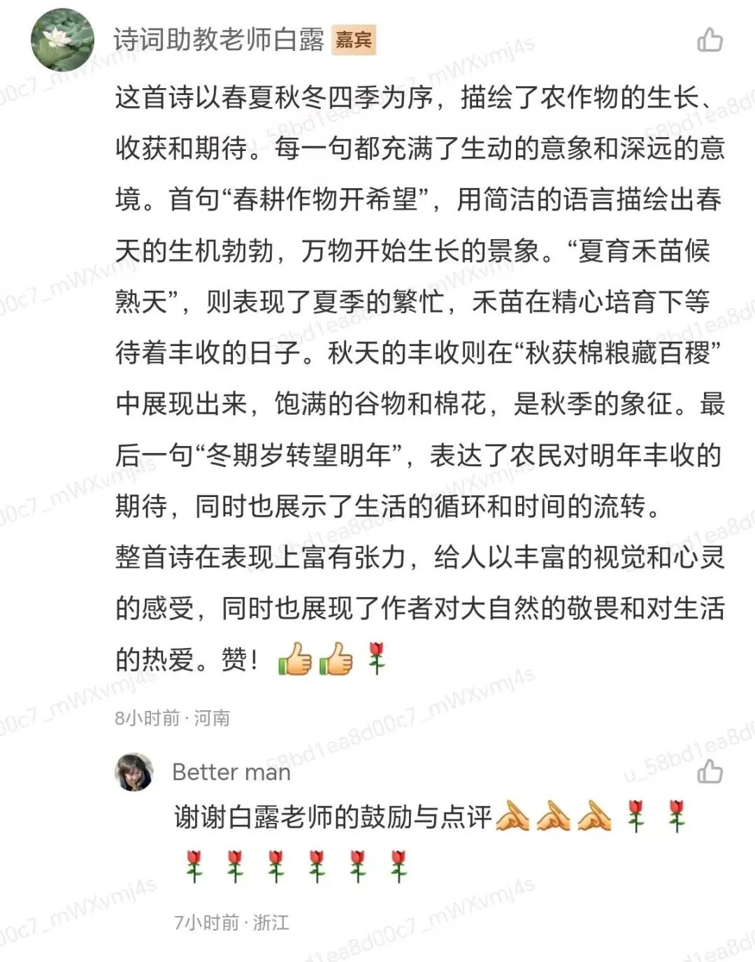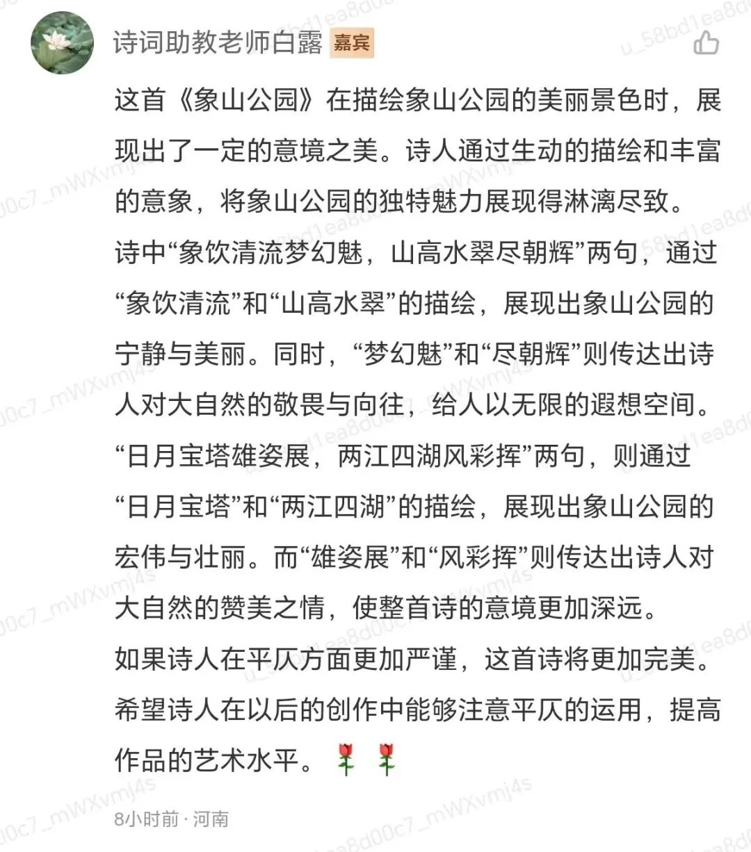 诗词老师将对会员诗友的诗词作品进行独家点评,为会员诗友提供宝贵的建议和指导,帮助他们提高写作水平。