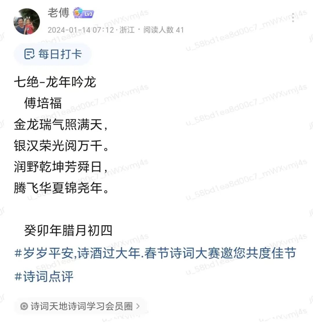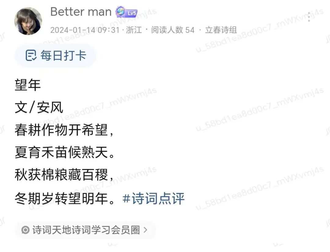 活动是诗词天地会员圈特有的诗词活动之一,每周二、四、六在诗词天地会员圈举行。