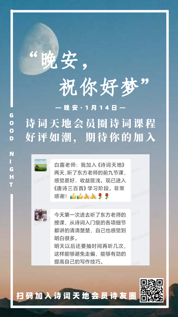 晚安海报丨诗词天地会员圈诗词课程好评如潮,期待你的加入