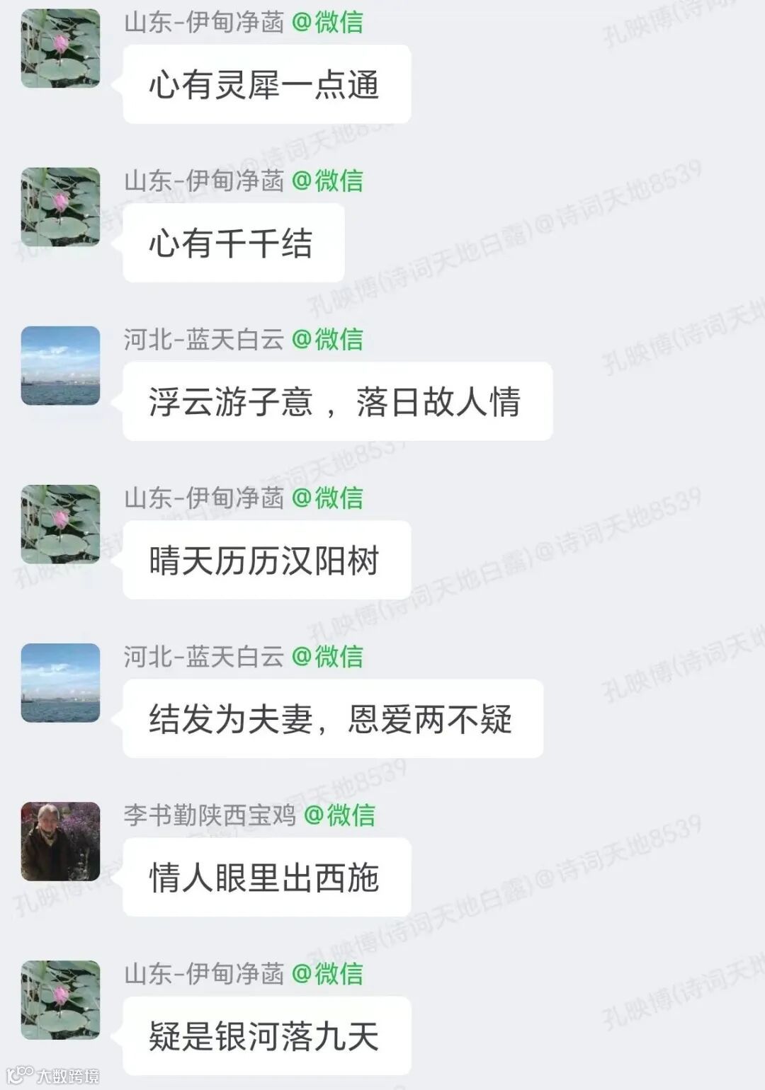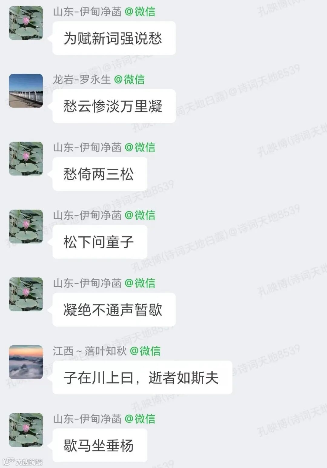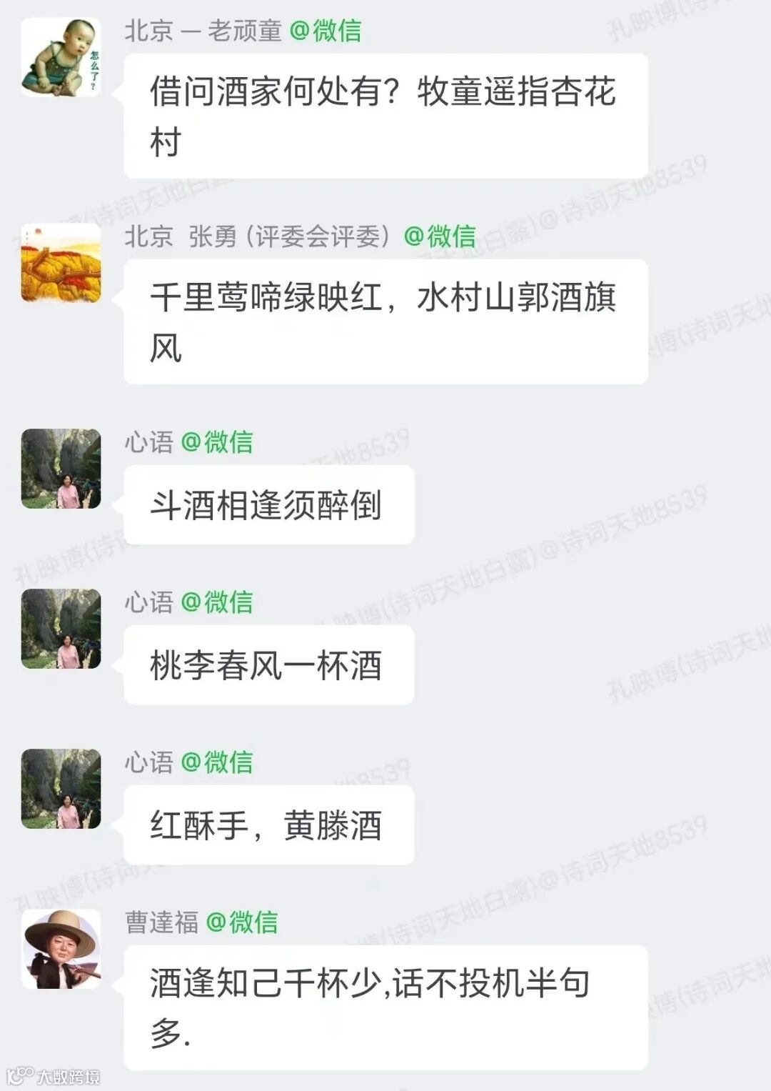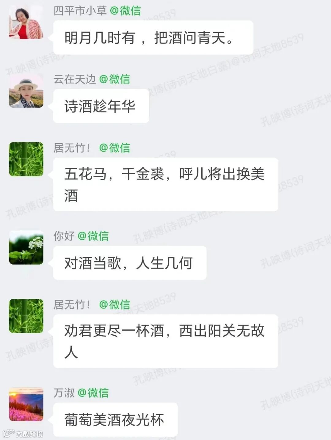 “诗词飞花令”,“诗词接龙”活动是诗词天地会员群内特有的活动,分别于周二,周四在会员诗友圈内举行。