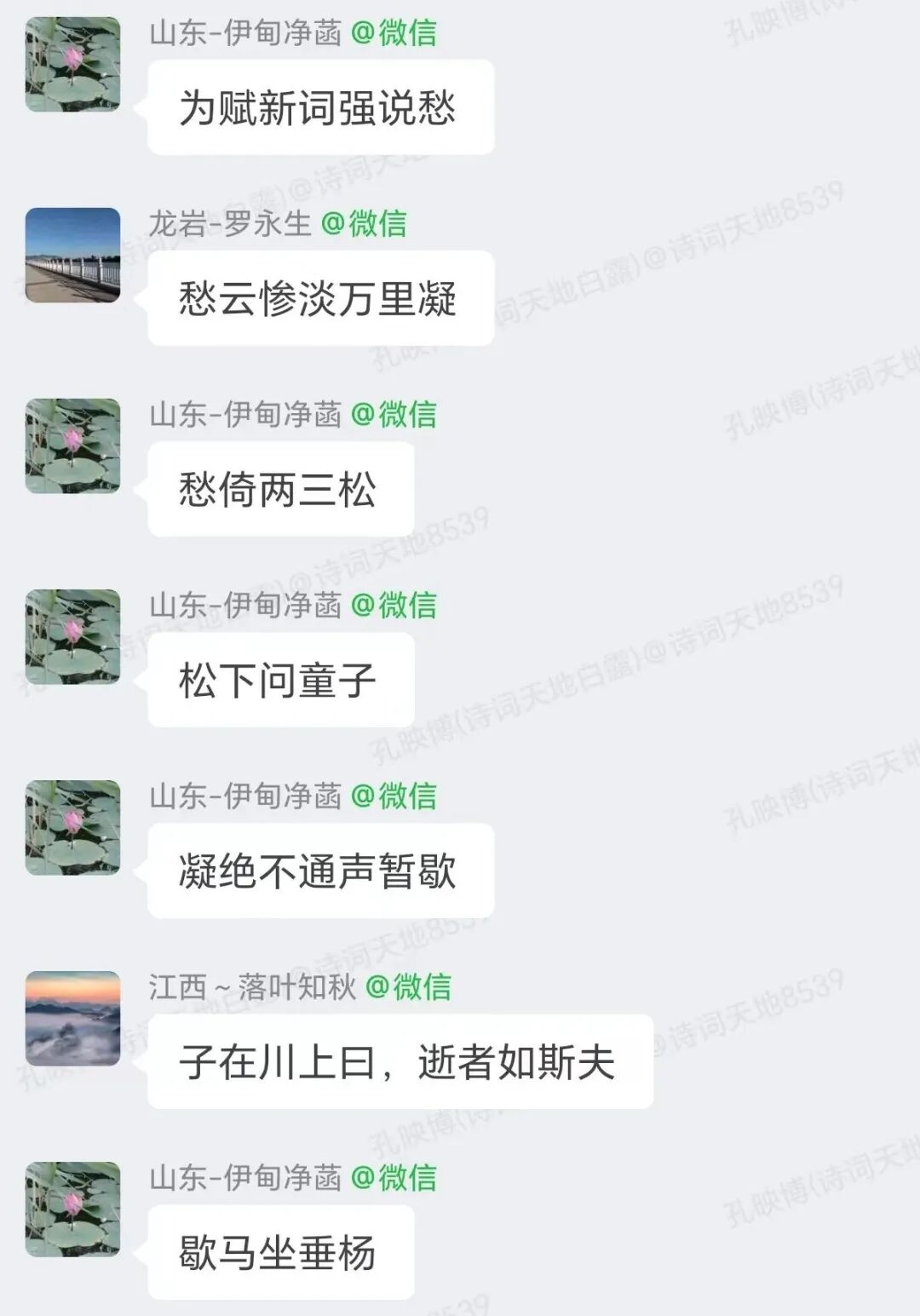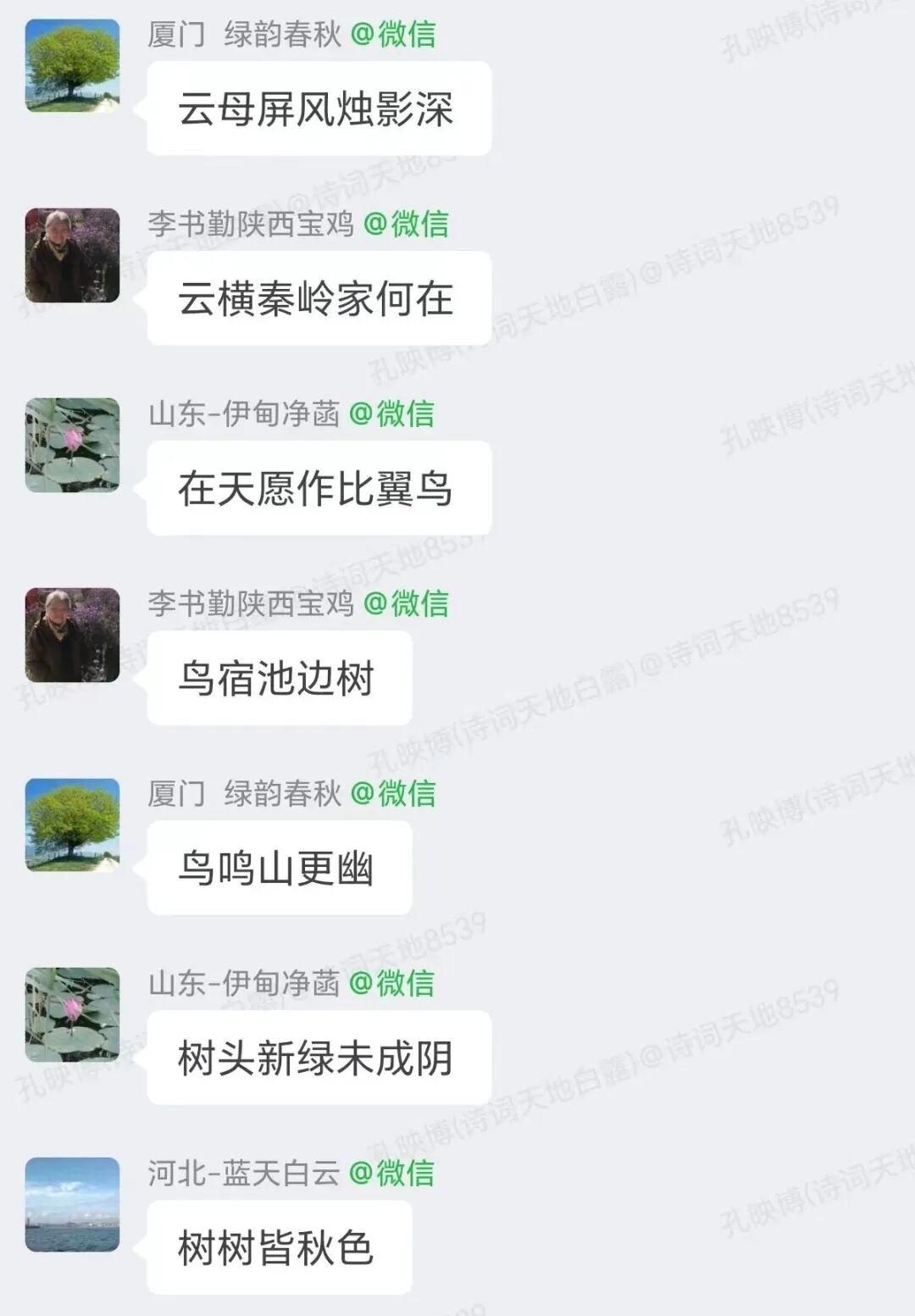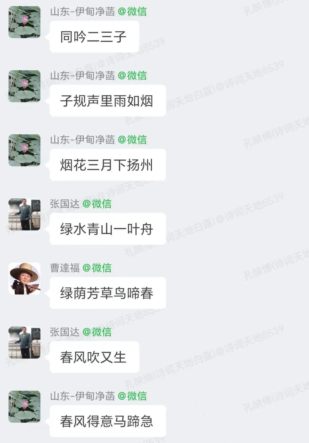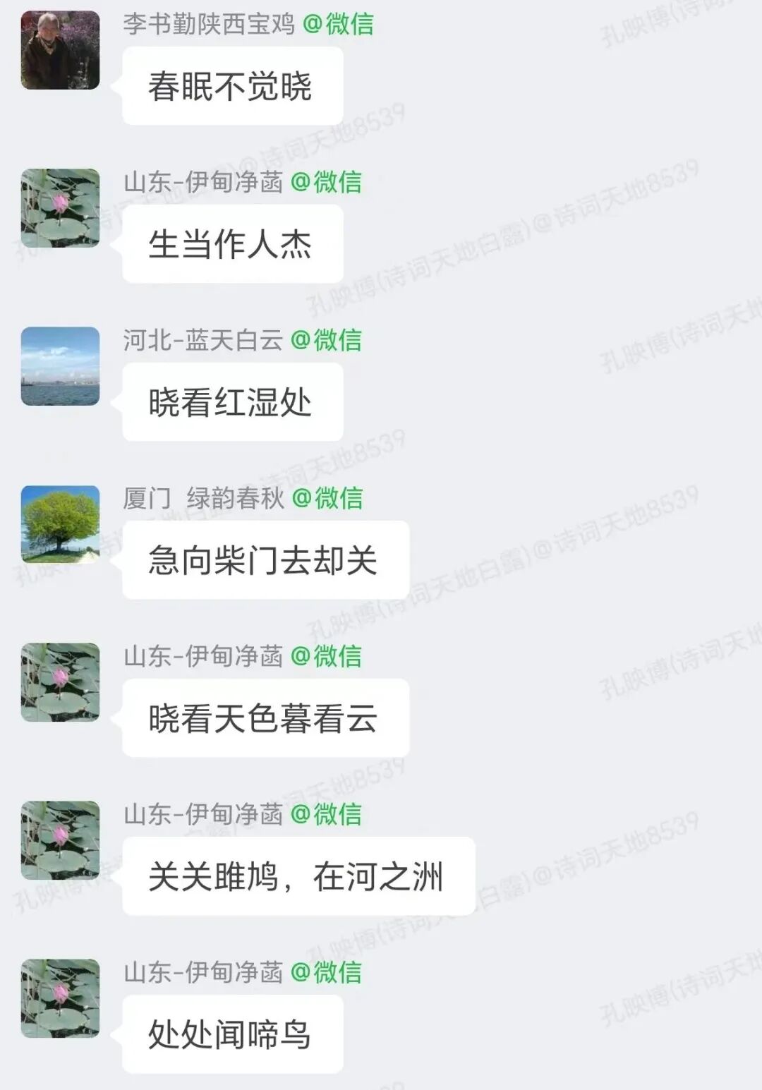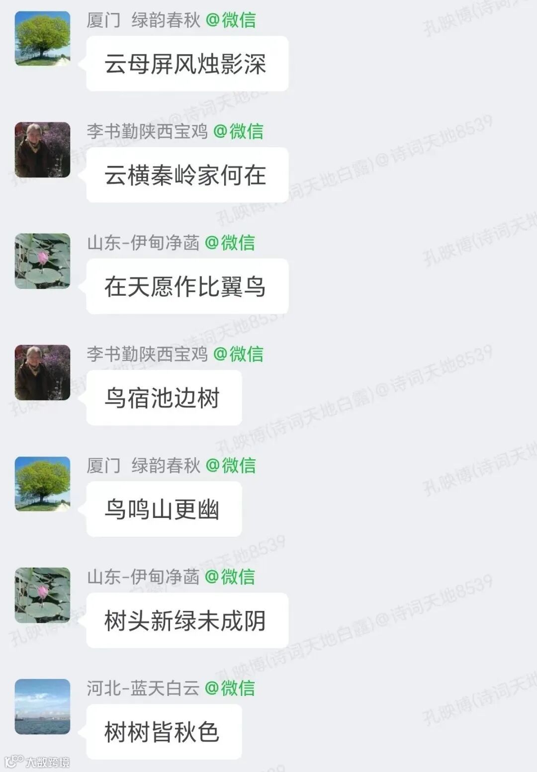 “诗词飞花令”,“诗词接龙”活动是诗词天地会员群内特有的活动,分别于周二,周四在会员诗友圈内举行。