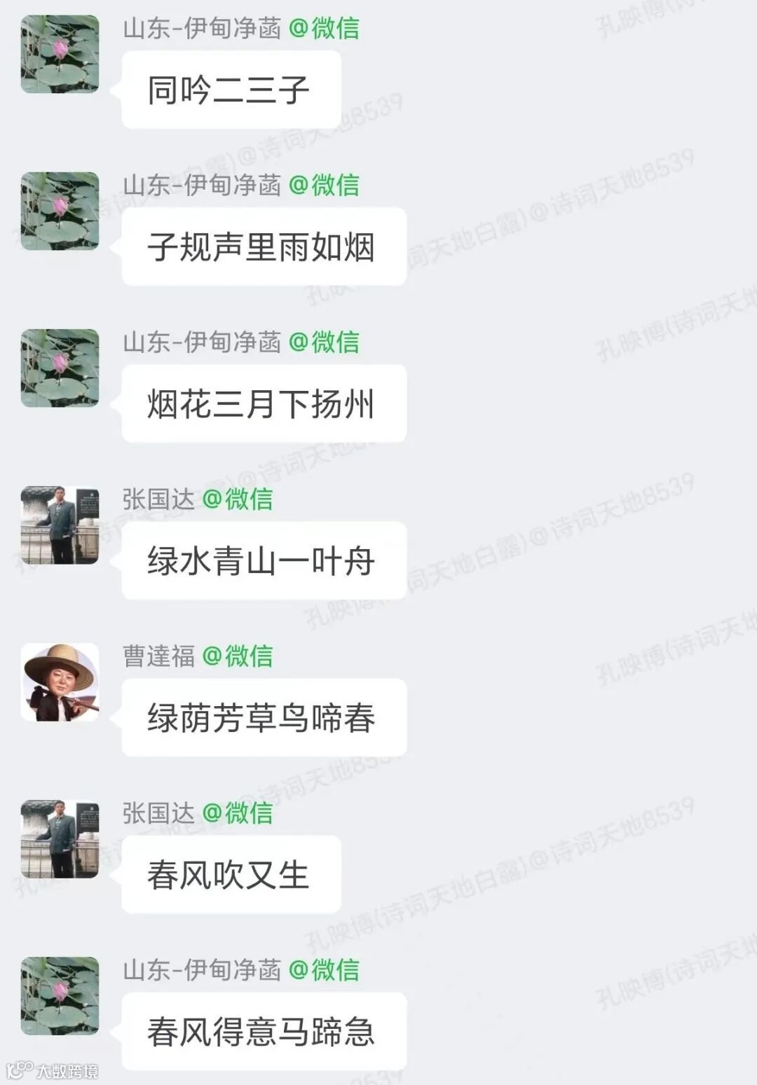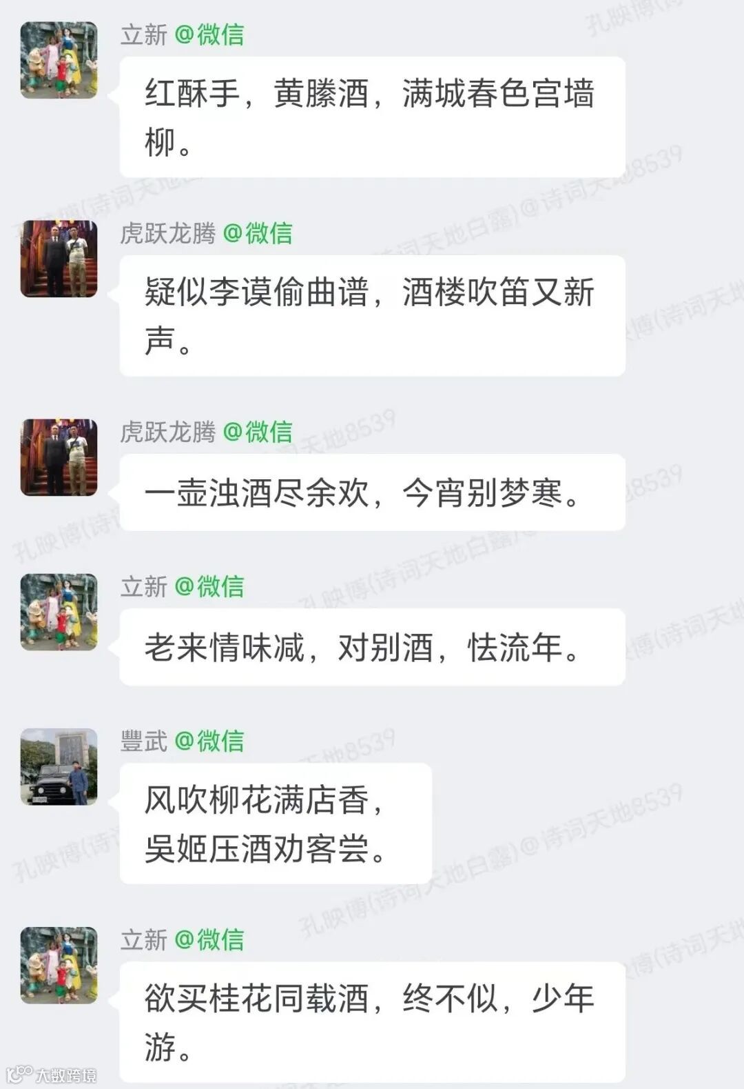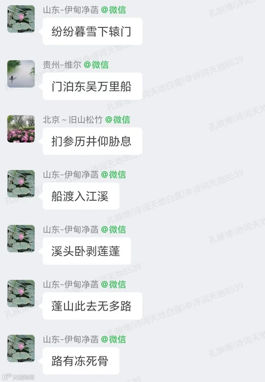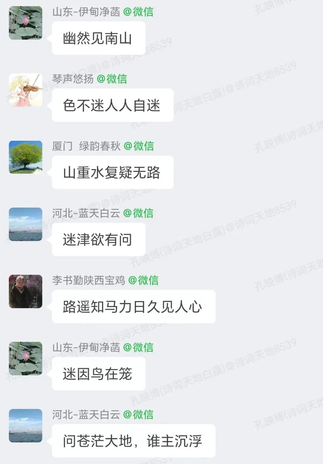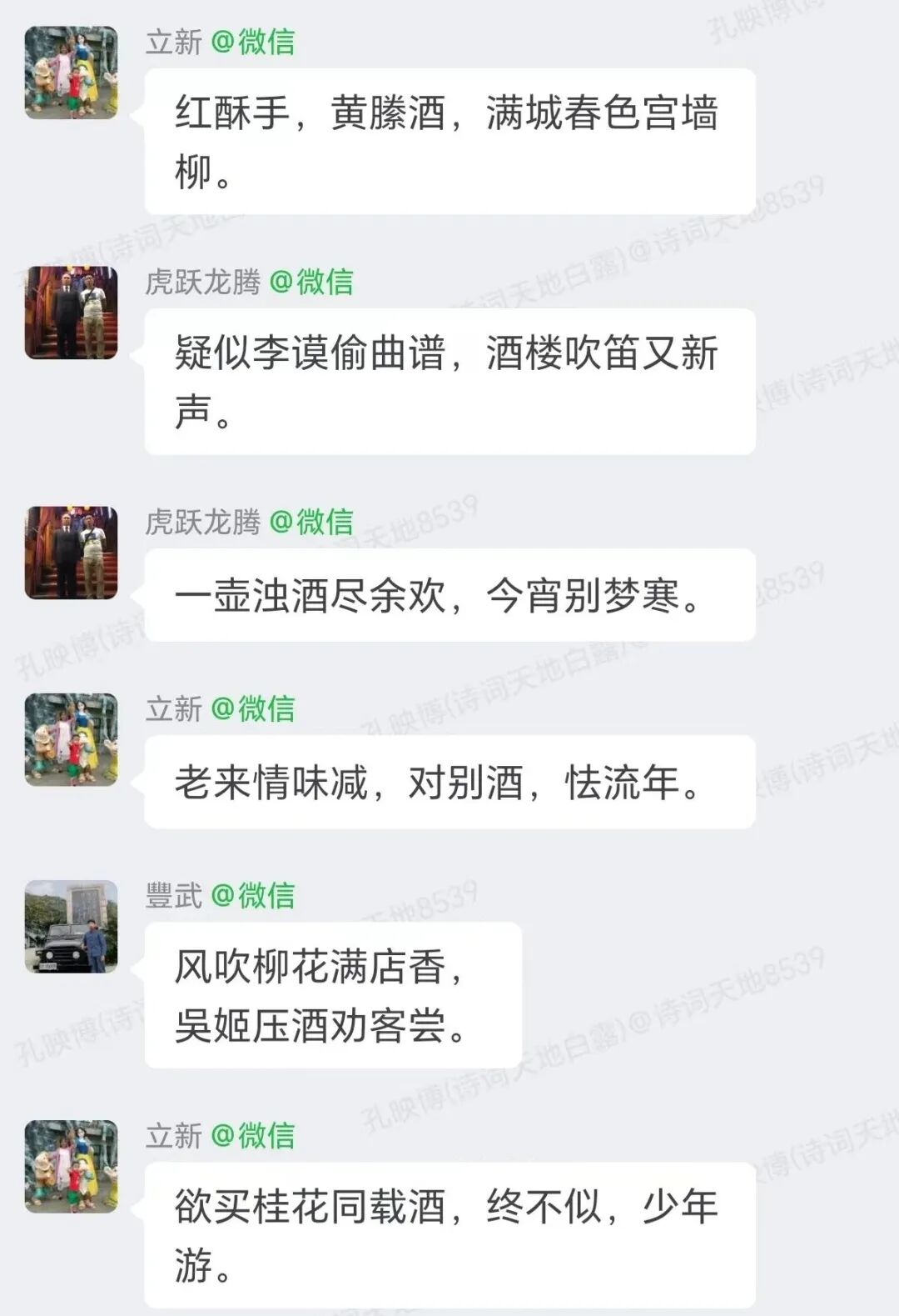 “诗词飞花令”,“诗词接龙”活动是诗词天地会员群内特有的活动,分别于周二,周四在会员诗友圈内举行。