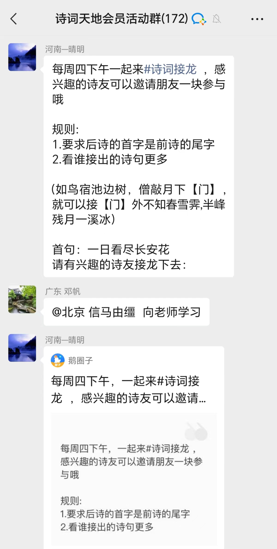 他们每天在会员圈学诗,写诗,分享自己的作品,学习名家的经验,共同成长。