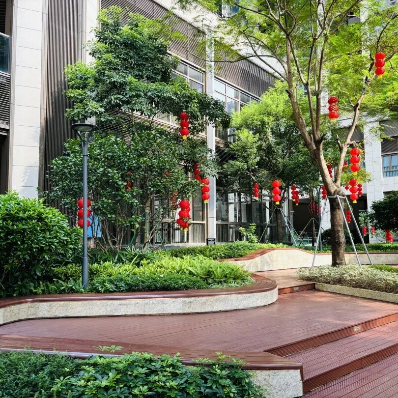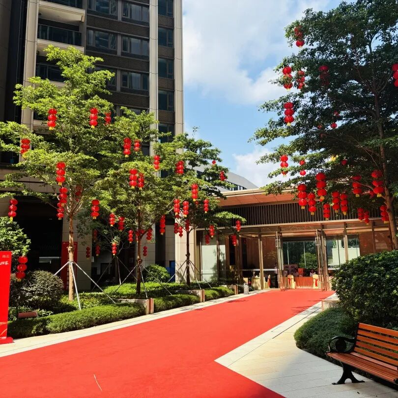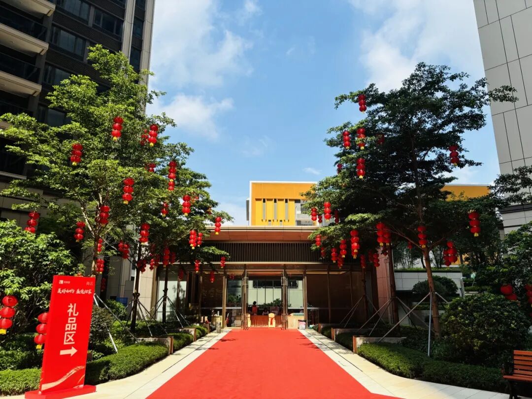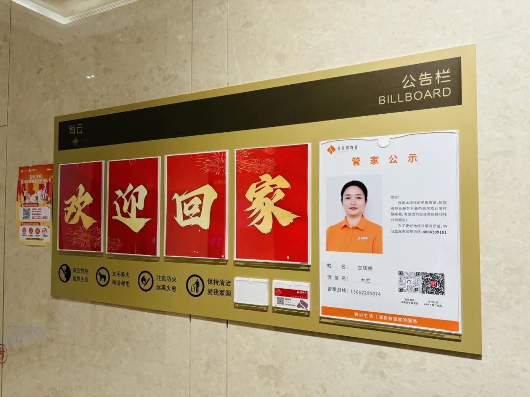 时间仿佛也愿为这份喜悦驻足。目光所及,是红火喜庆的盈盈笑意:树上摇曳的红灯笼,像一串串熟透的喜悦;户内张贴的福卡,承载着邻里温暖的祝福;电梯厅清晰的管家信息,是随时守候的安心依靠。