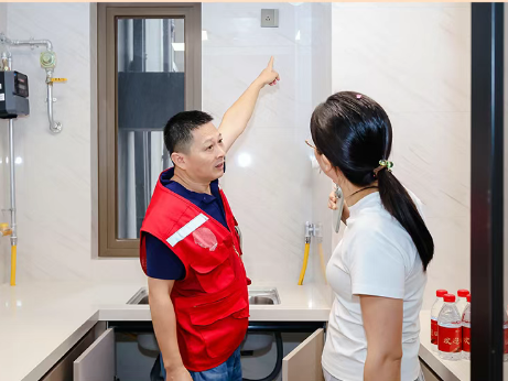▲验房工程师全程陪同,细致核验,为您的新家生活奠定安心基础。