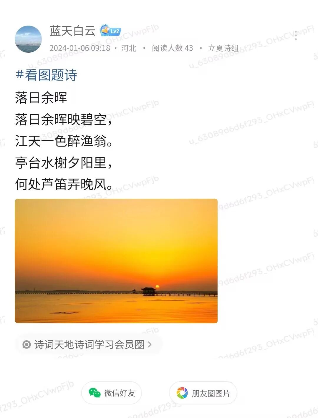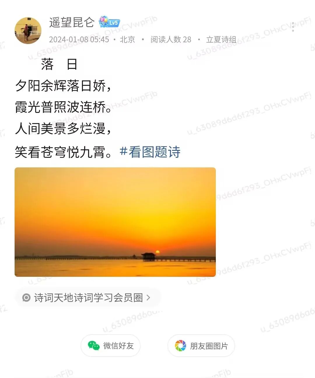 诗词天地会员圈特有的趣味诗词活动,每周一【接诗】、三【藏头诗】】、五【以图题诗】均在诗词天地会员圈举行。
