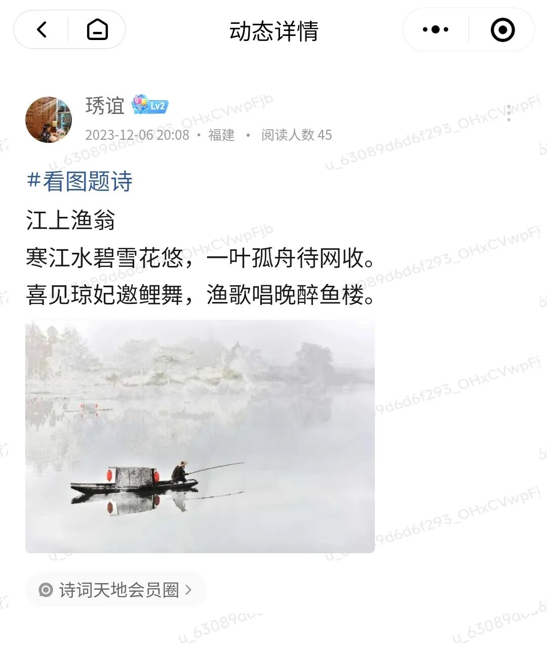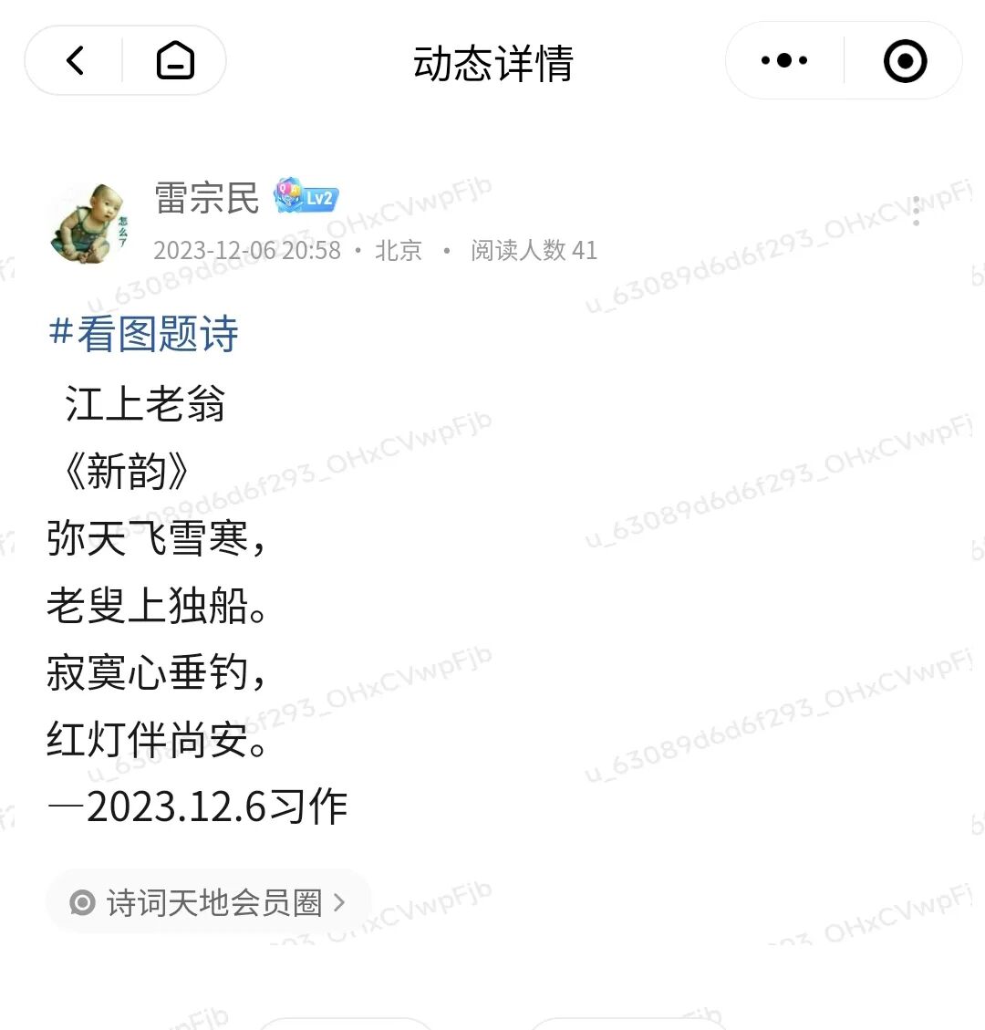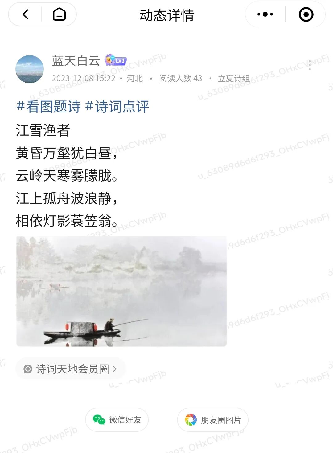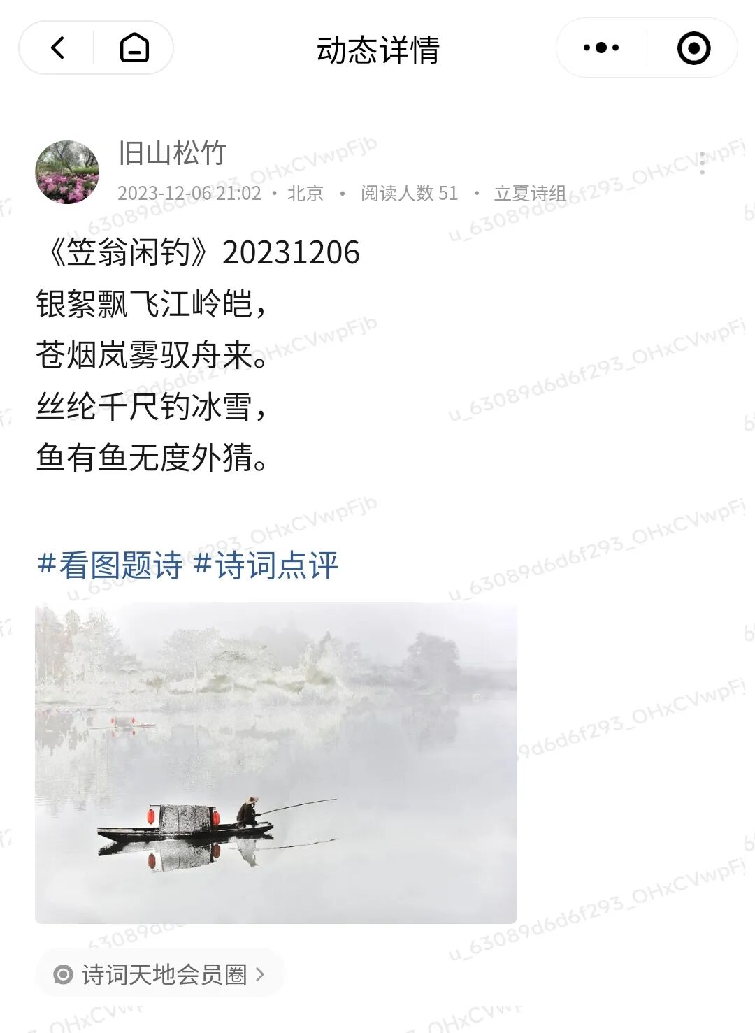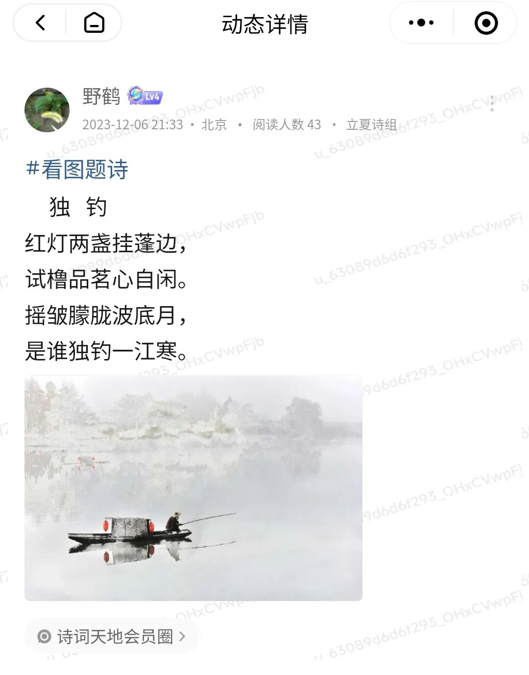 “看图题诗”活动是诗词天地会员圈特有的诗词活动之一,每周一、三、五在诗词天地会员圈举行。