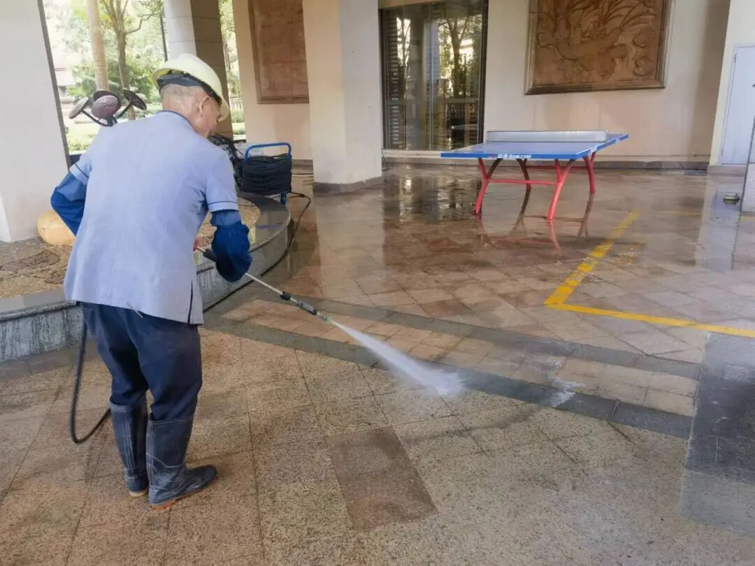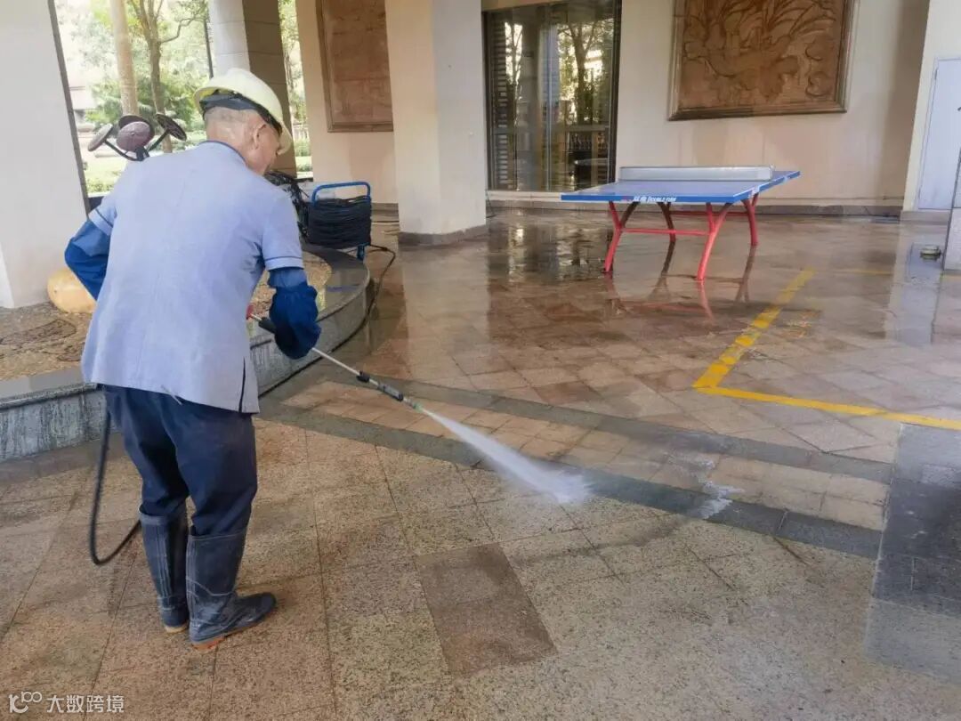 近期“回南天”,墙面布满水珠,地面湿滑,鸿荣源物业人们也贴心地帮助业主除湿。