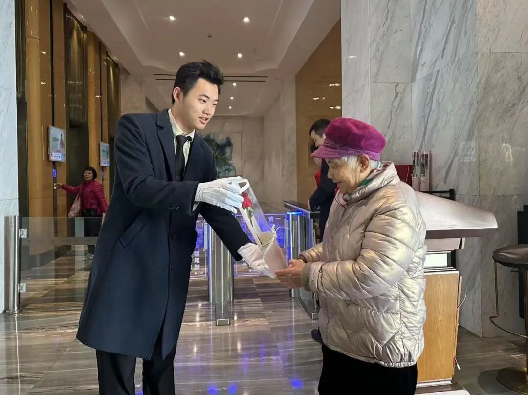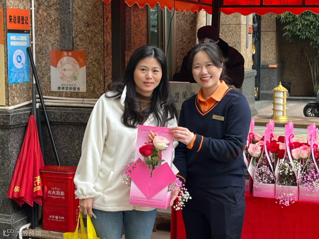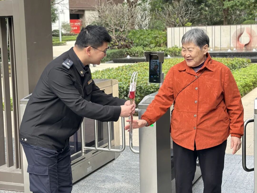 “阿姨,送您一支玫瑰花,祝您女神节快乐!” 芬芳的鲜花、灿烂的笑脸,共同勾勒出初春的温馨画面。鸿荣源物业人以微笑为笔,用行动作墨,向所有鸿邻女神深情告白。在这个美好的三月,女神们与烂漫春光相映成趣,都是春天里最靓丽的风景。