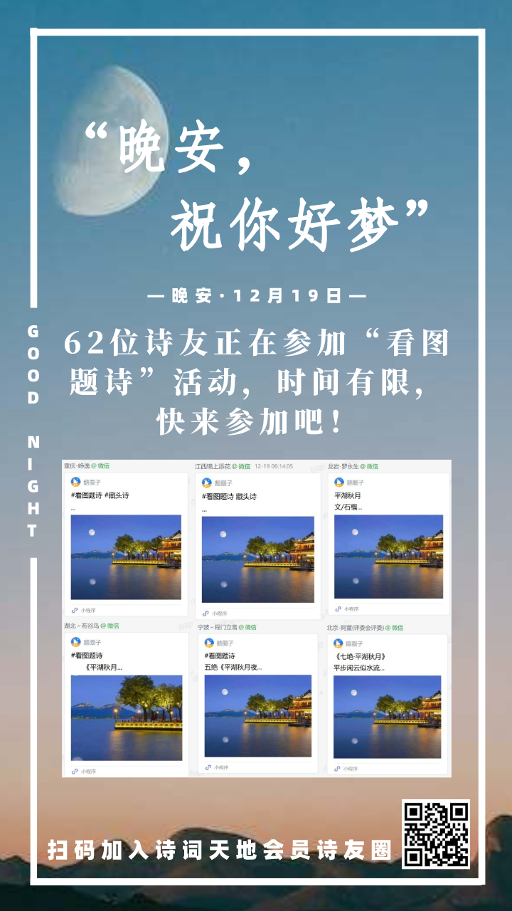 晚安海报丨62位诗友正在参加“看图题诗”活动,时间有限,快来参加吧!