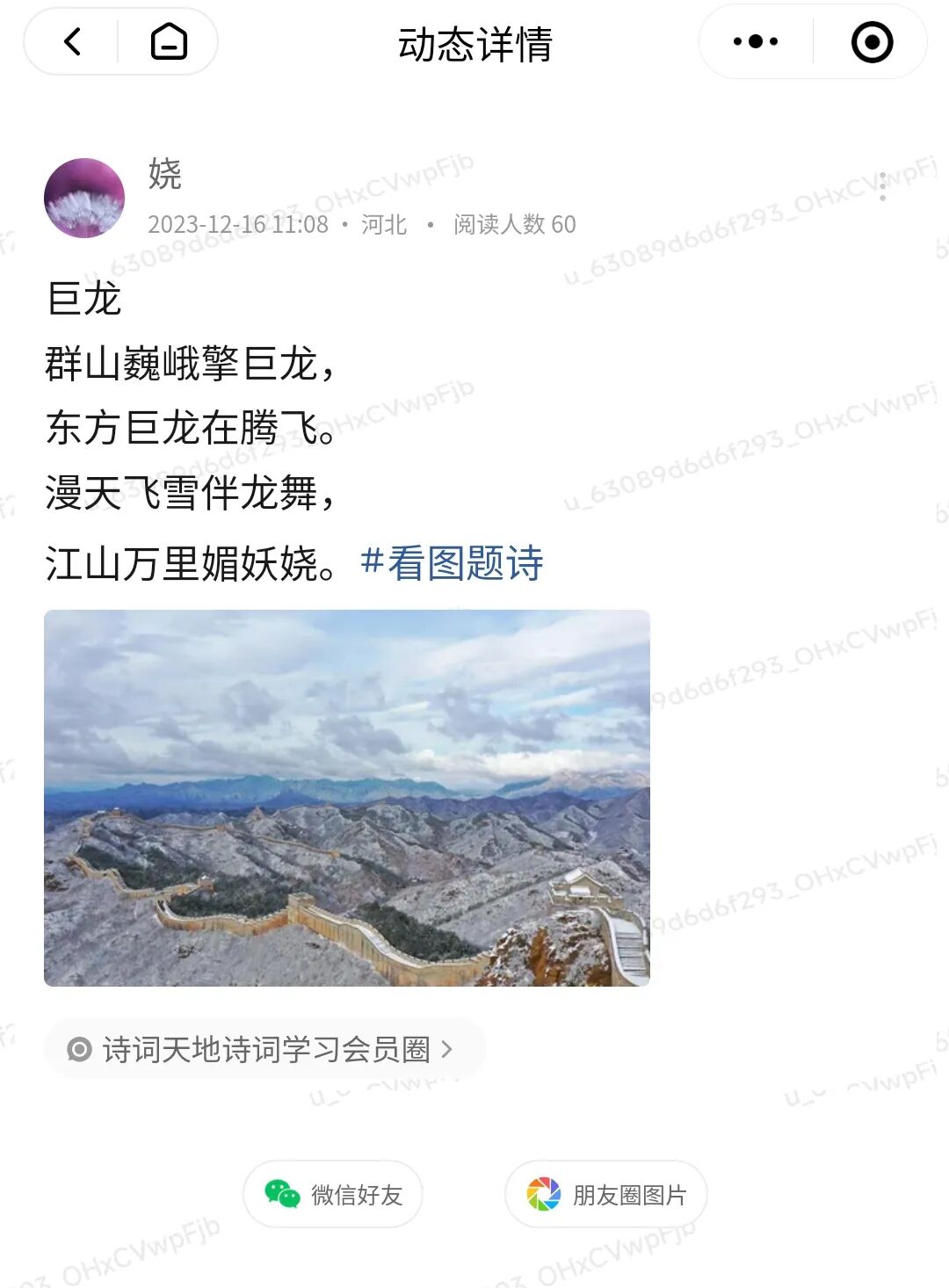 “看图题诗”活动是诗词天地会员圈特有的诗词活动之一,每周一、三、五在诗词天地会员圈举行。