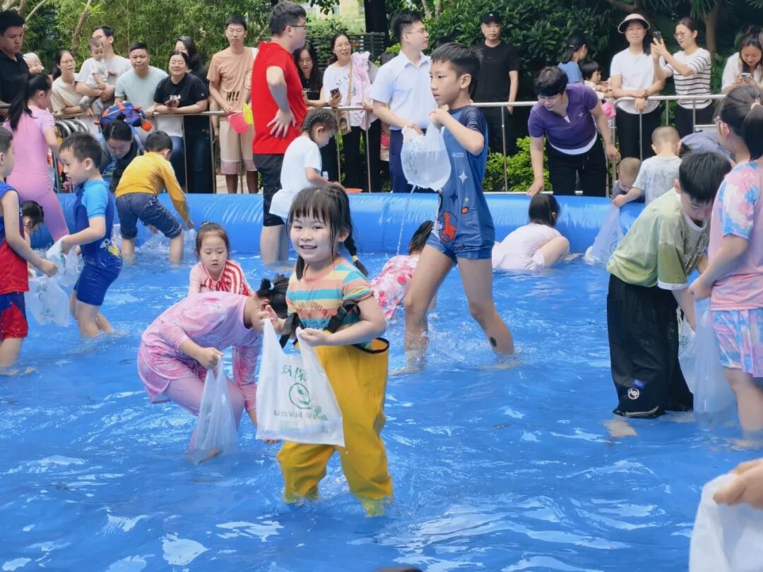 立夏时节,我们精心打造“摸鱼乐翻天”水上游乐场,唤醒都市人深藏的童趣。泳池化身欢乐竞技场,业主们或屏息蹲守,或追逐鱼群,水花飞溅间尽显童真本色;大朋友小朋友同池协作,满载“渔获”而归,鲜活的滋味延续着活动带来的温馨余韵……这场水花四溅的狂欢,让不同年龄层的业主在追逐嬉戏中打破隔阂,重拾邻里间最本真的情感联结。