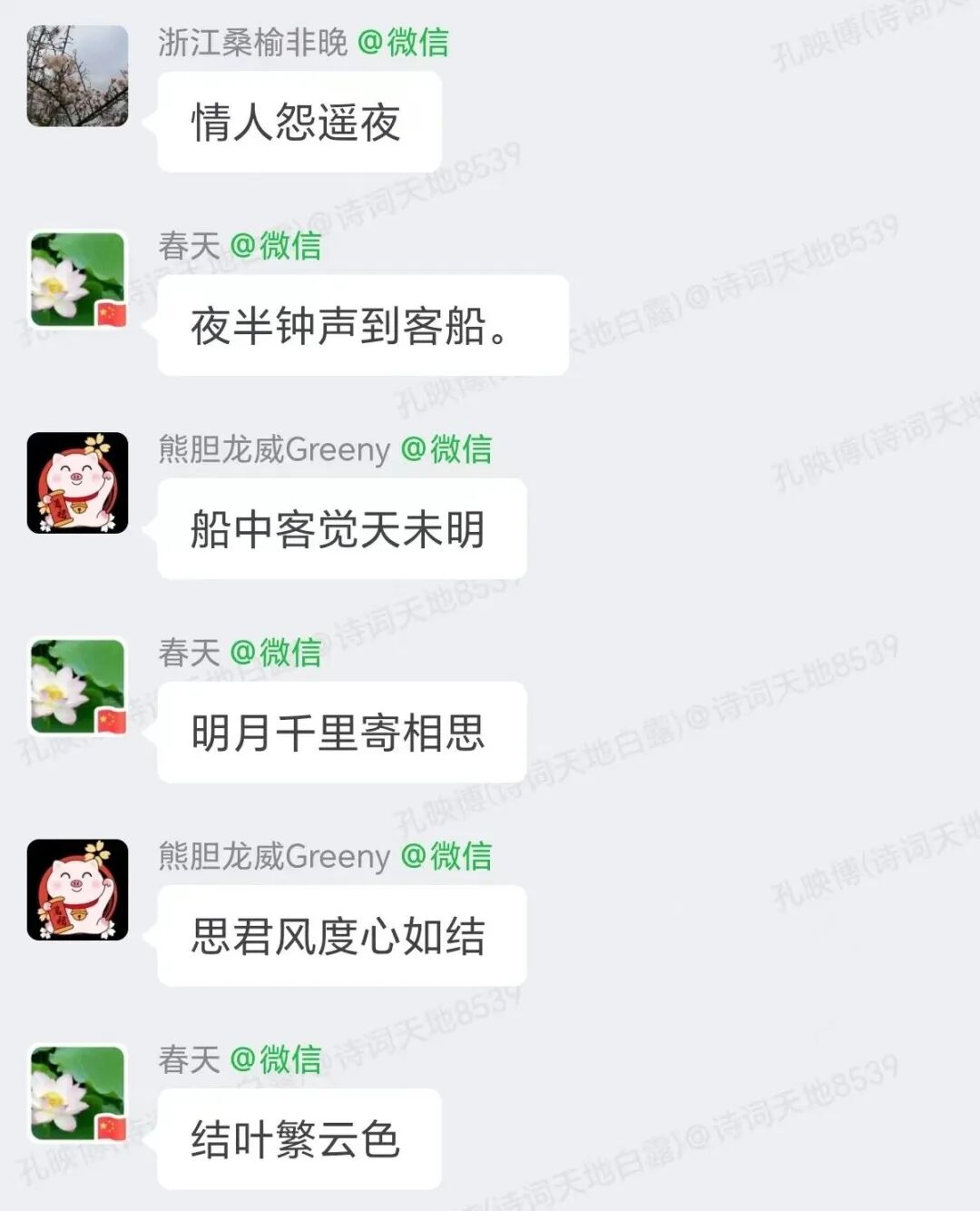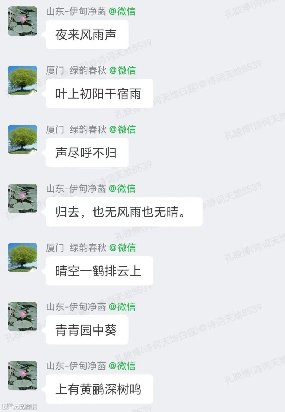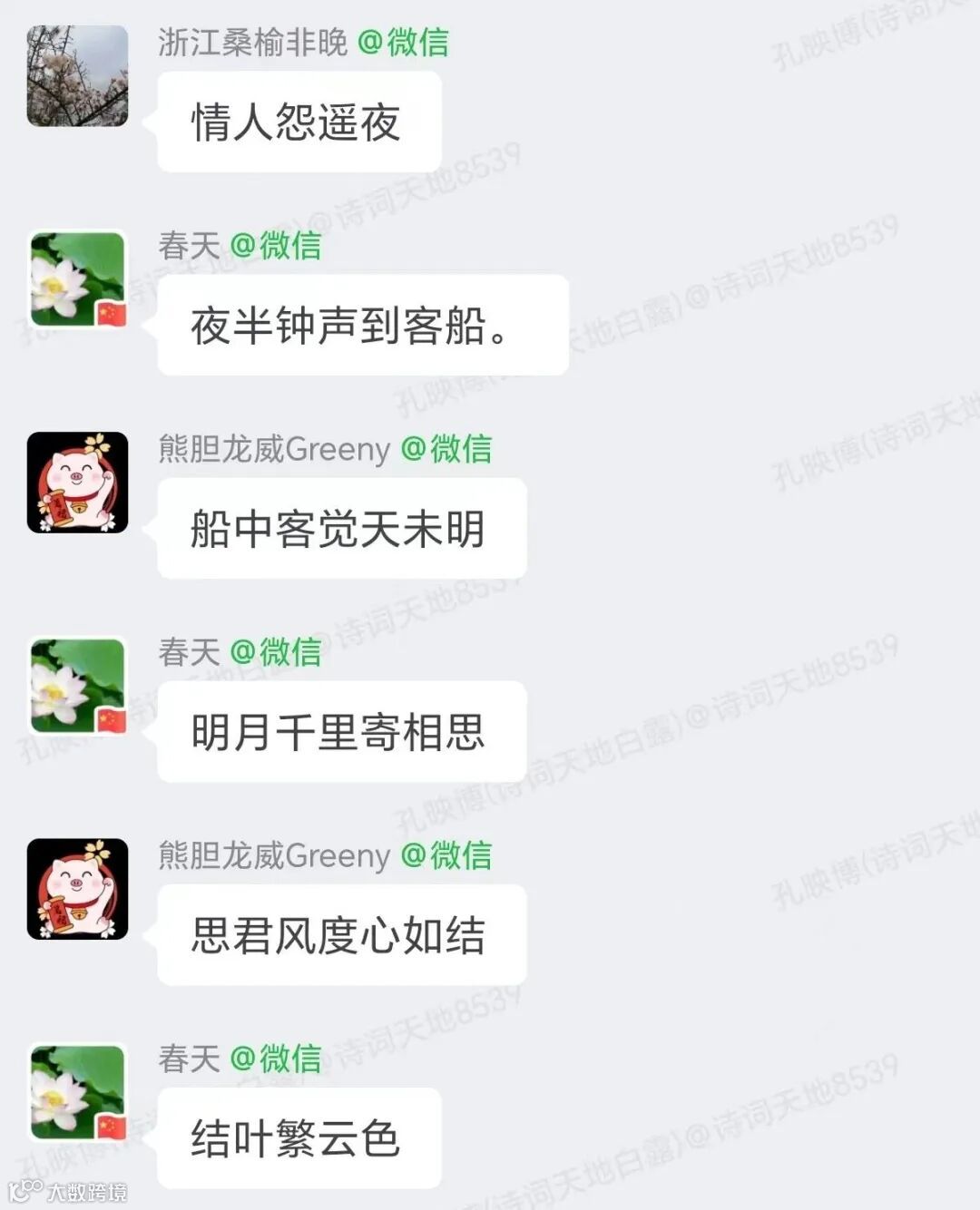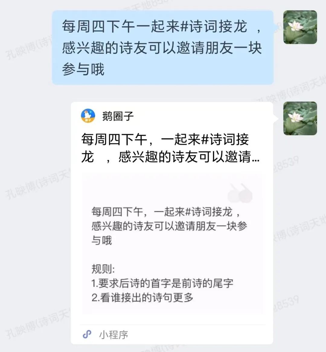 “诗词飞花令”,“诗词接龙”活动是诗词天地会员群内特有的活动,分别于周二,周四在会员诗友圈内举行。