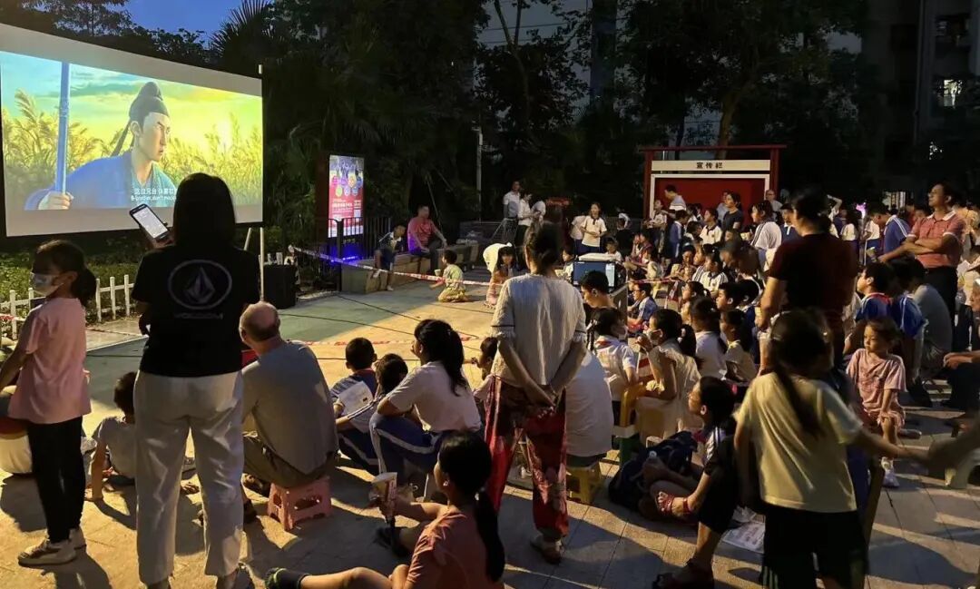社区里热闹的观影氛围
