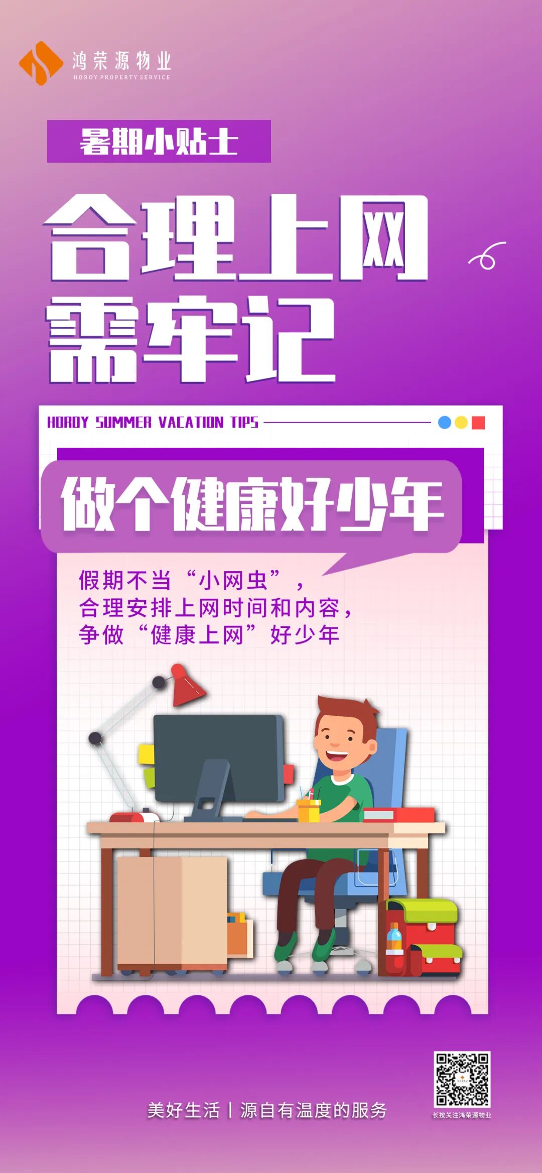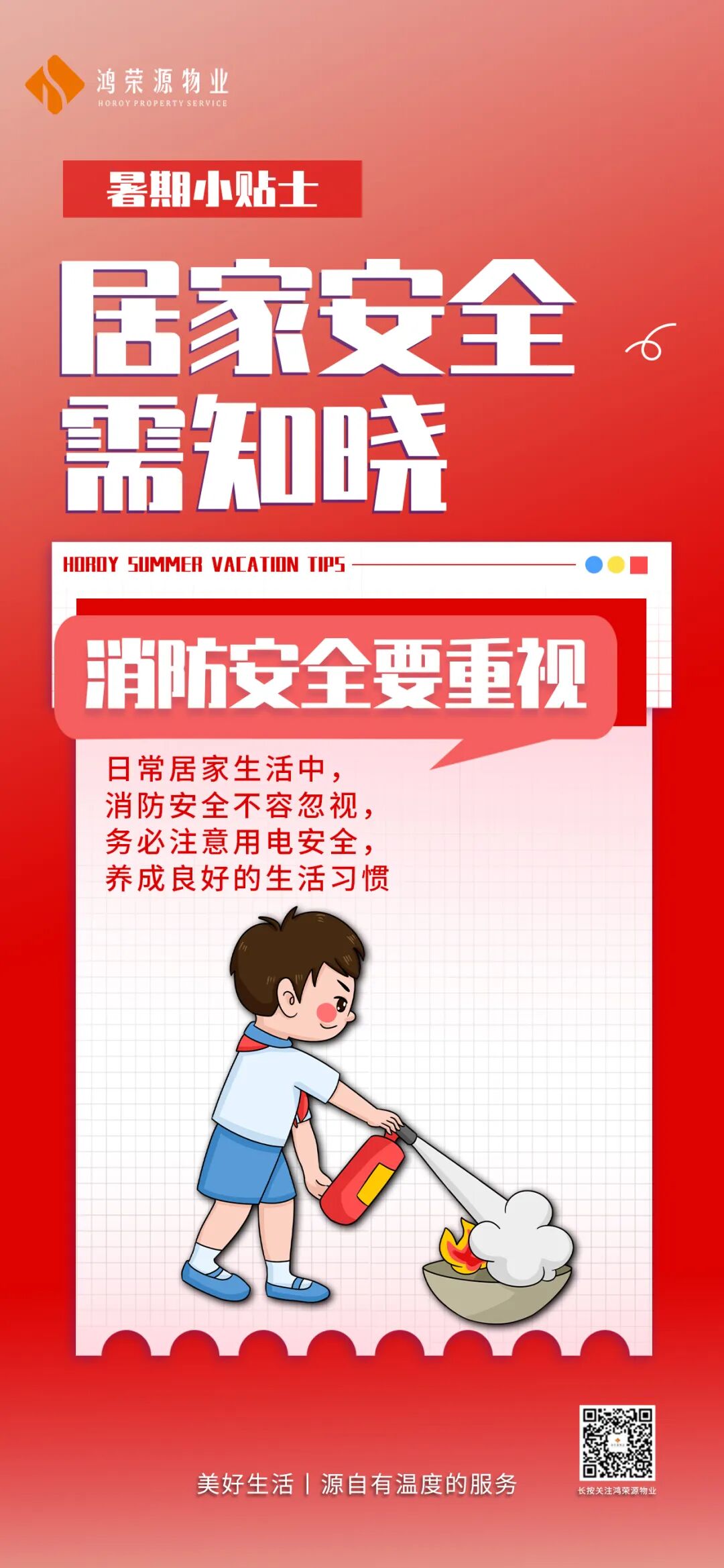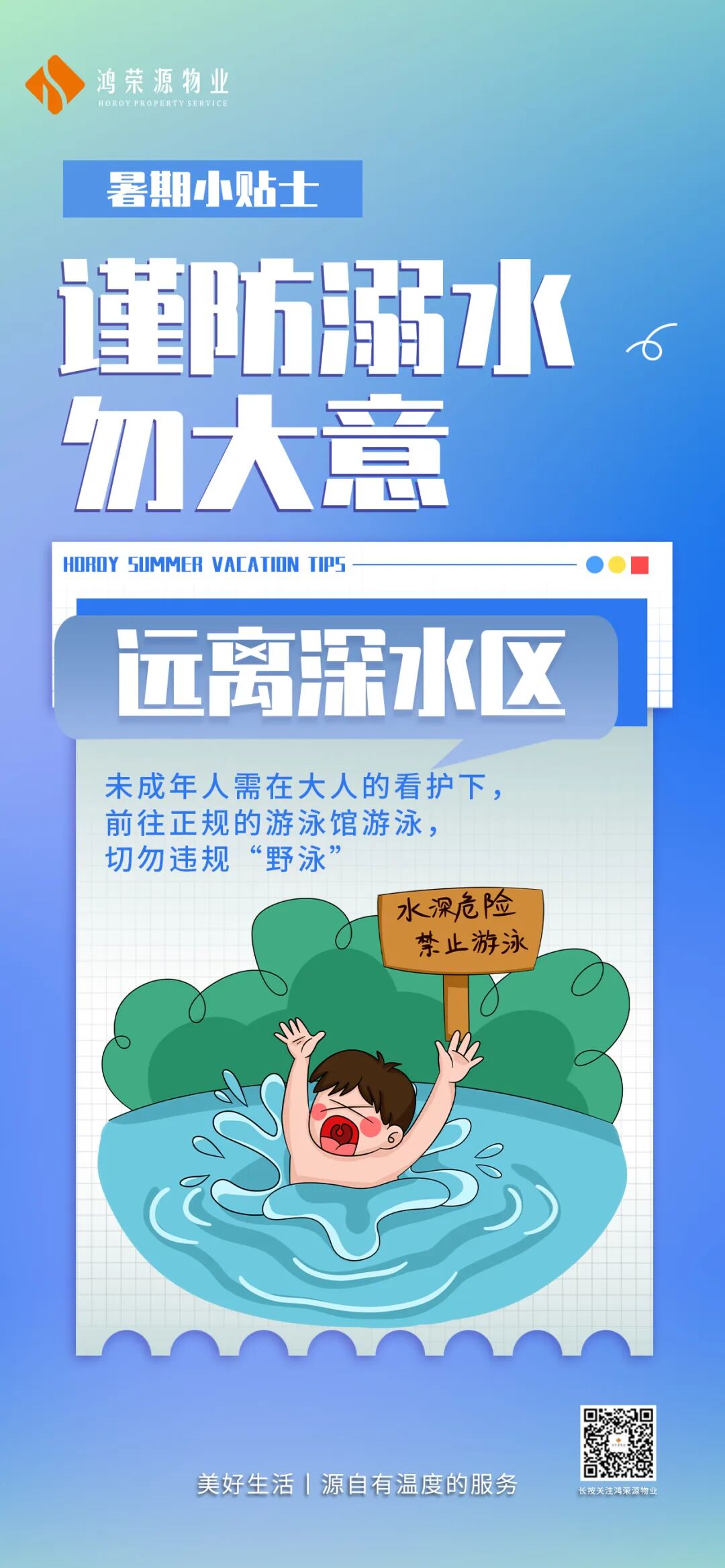 为了孩子们有个平安快乐的暑假,鸿荣源物业温馨提示各位业主家人们,以下这些暑假安全小提示一定要铭记: