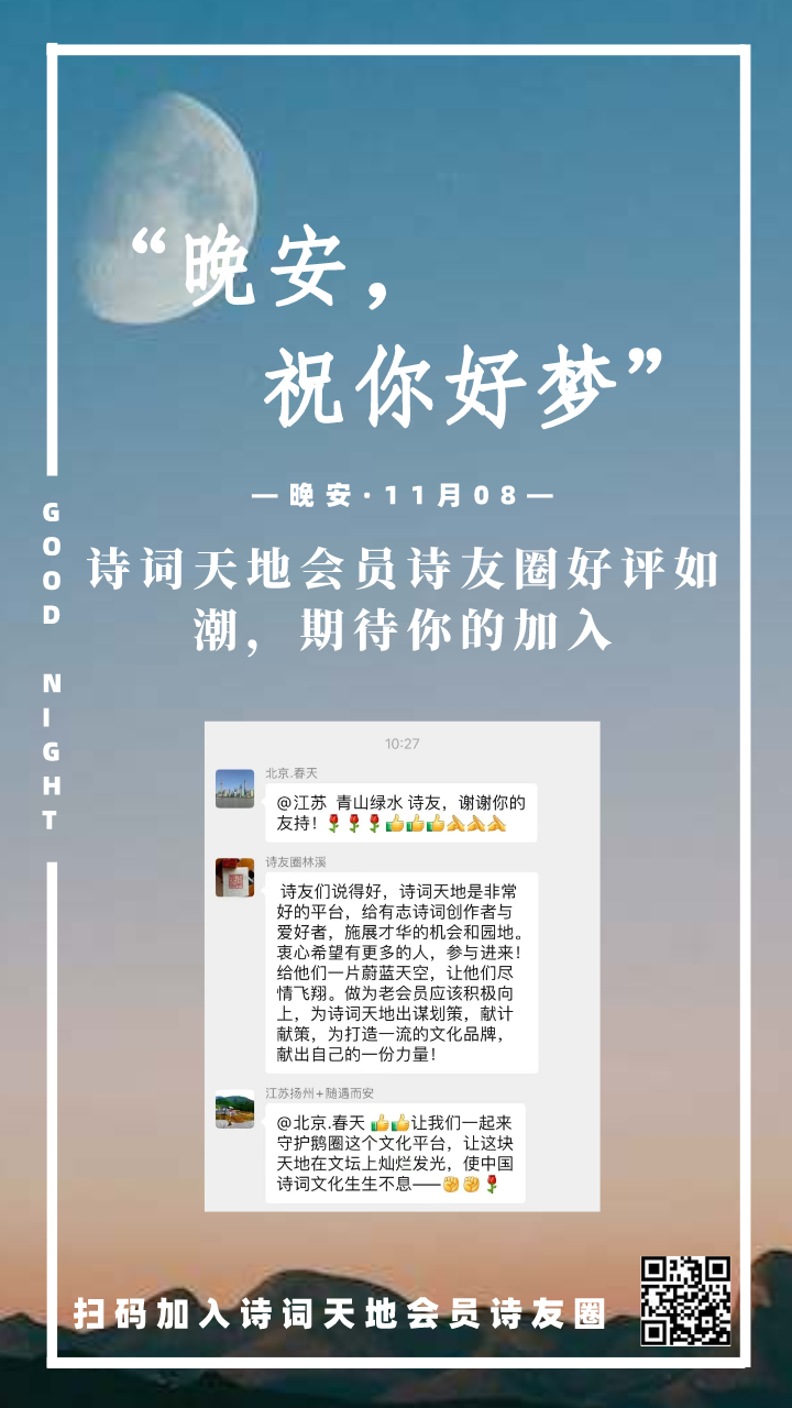 晚安海报丨诗词天地会员诗友圈好评如潮,期待你的加入