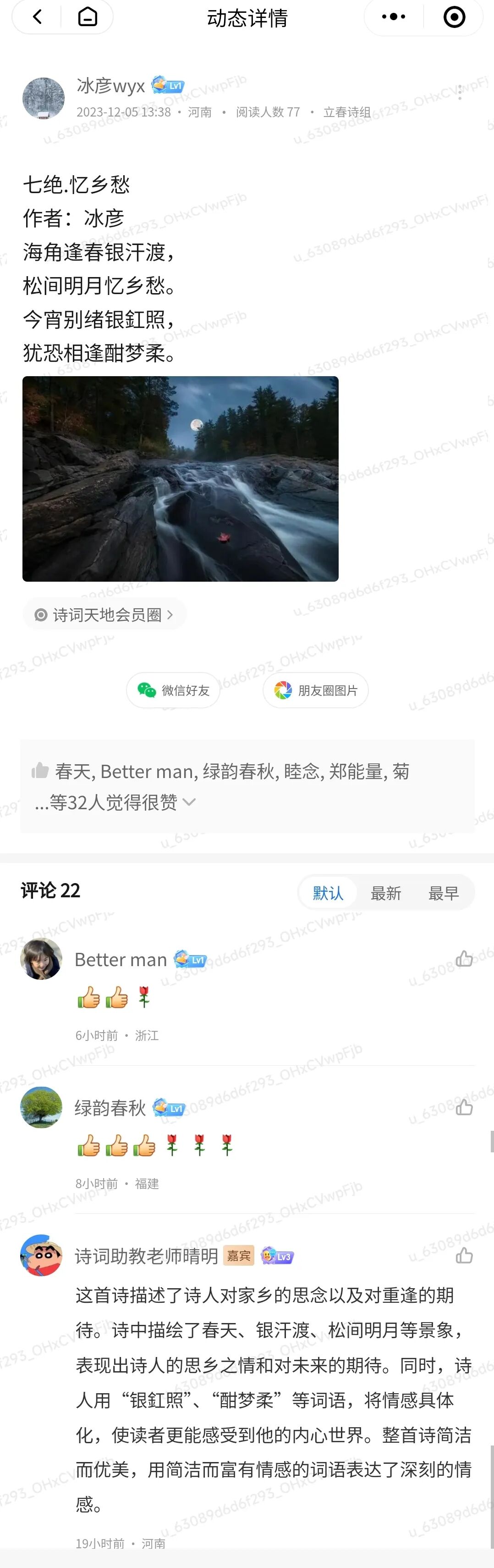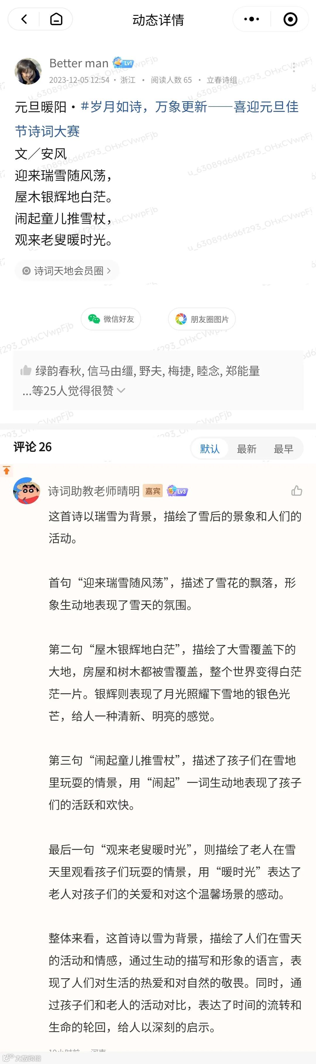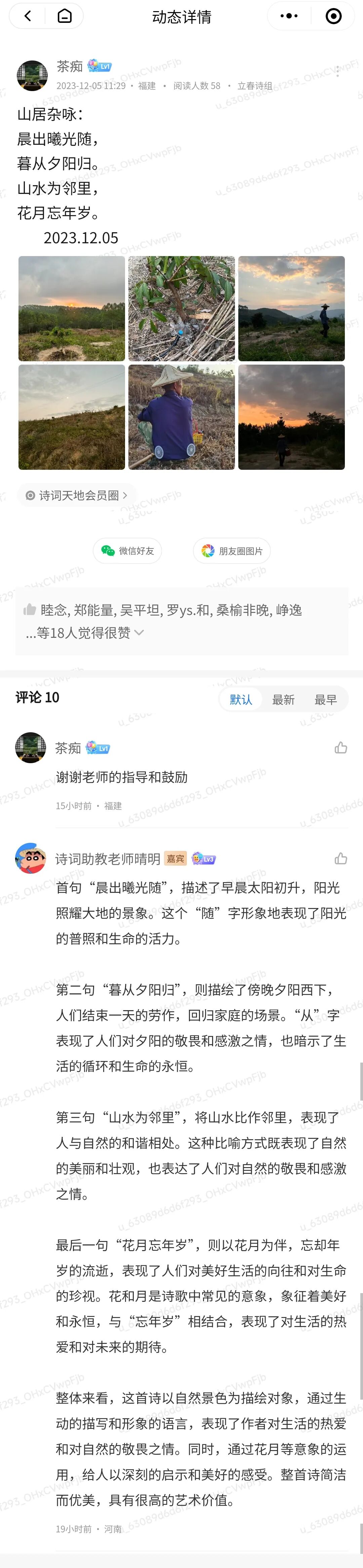 恭喜您关注诗词天地满一年!诗词天地为回馈粉丝,特地在诗友圈举办诗词点评活动: