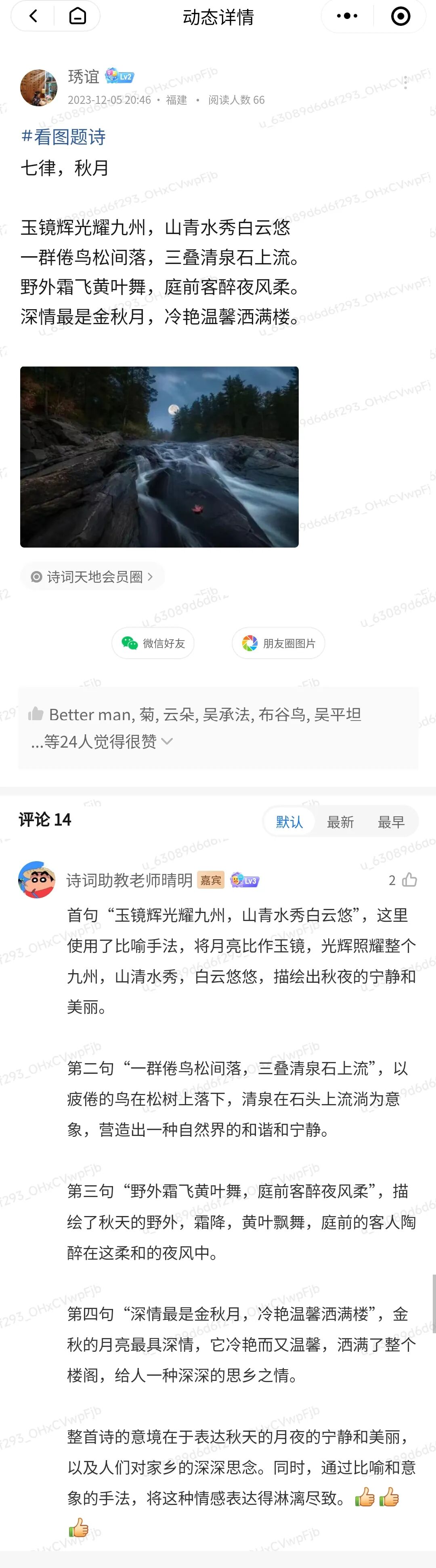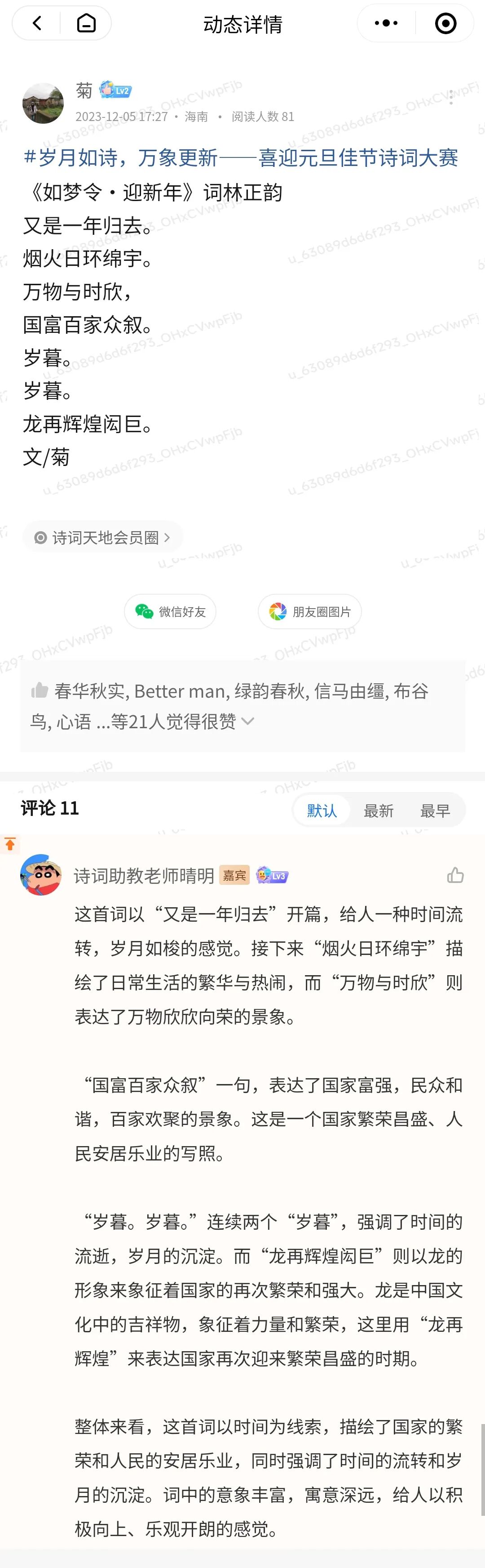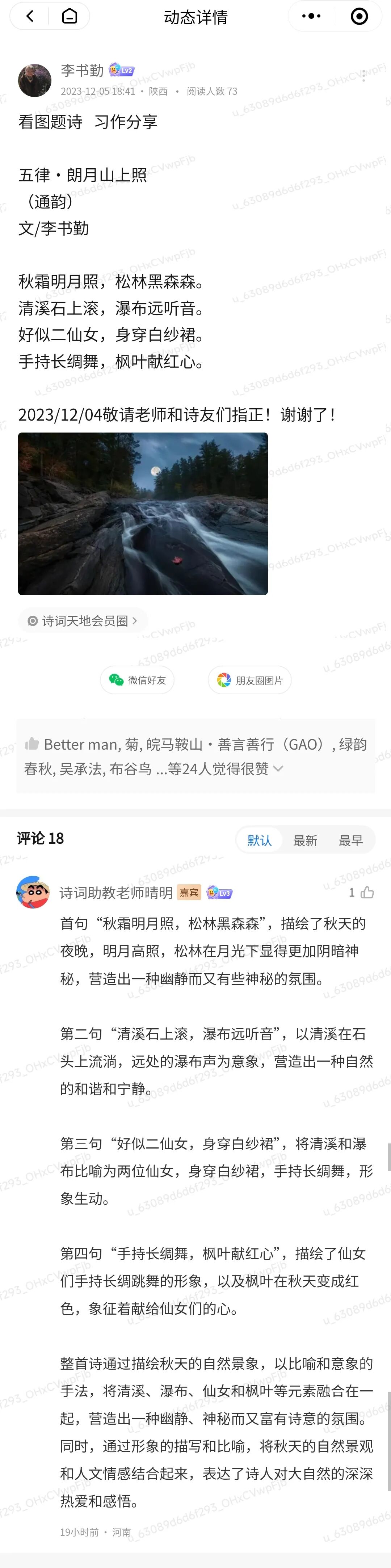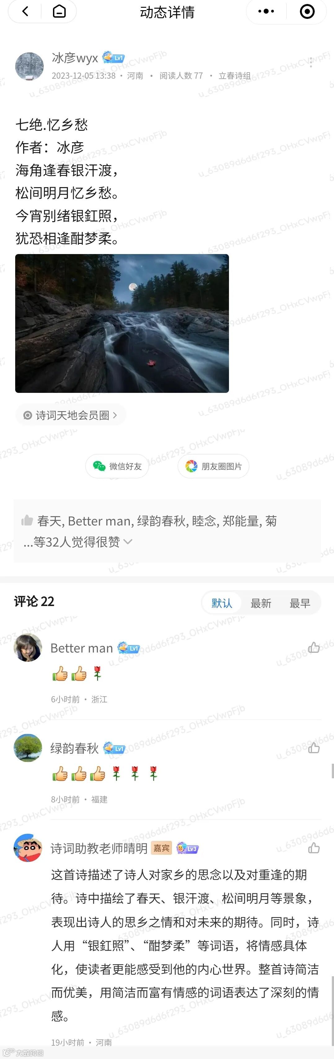 恭喜您关注诗词天地满一年!诗词天地为回馈粉丝,特地在诗友圈举办诗词点评活动:
