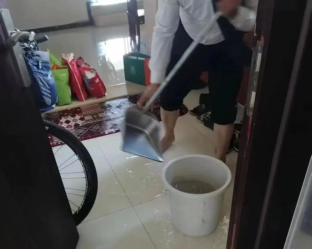 时间拨回半天前,正在巡楼的章小平,突然接到业主的紧急求助电话。电话中,业主慌张地告诉她,自己在更换热水器转接头时因没安装到位,导致水流漫到整间屋子里。联想到现场画面,章小平立马通知工程、保洁部门,三步并作两步跑到业主家,然后毫不犹豫的撸起裤腿,淌进积水里。