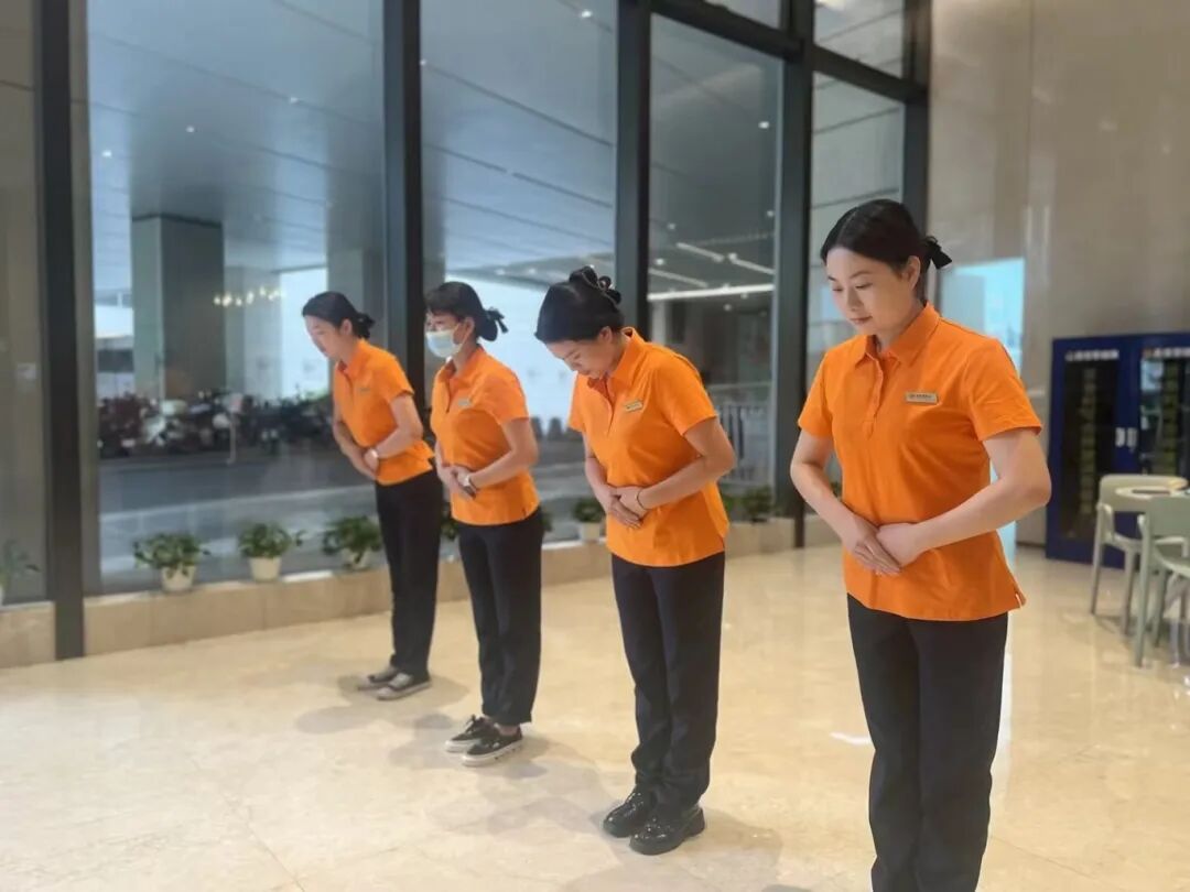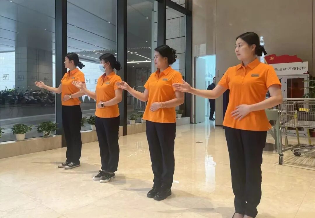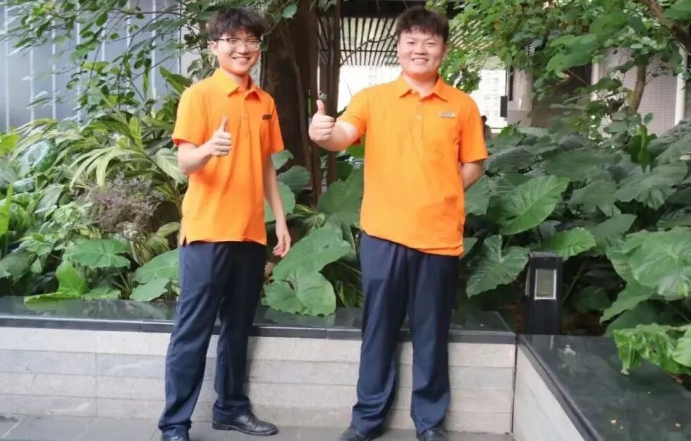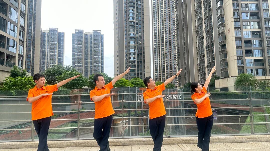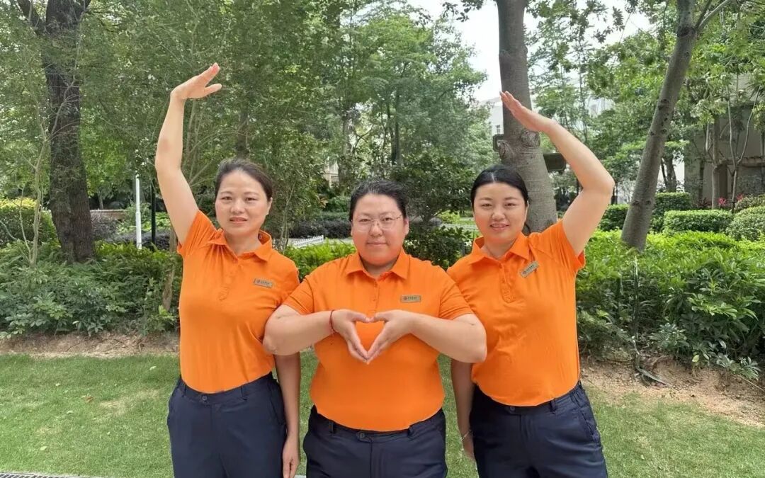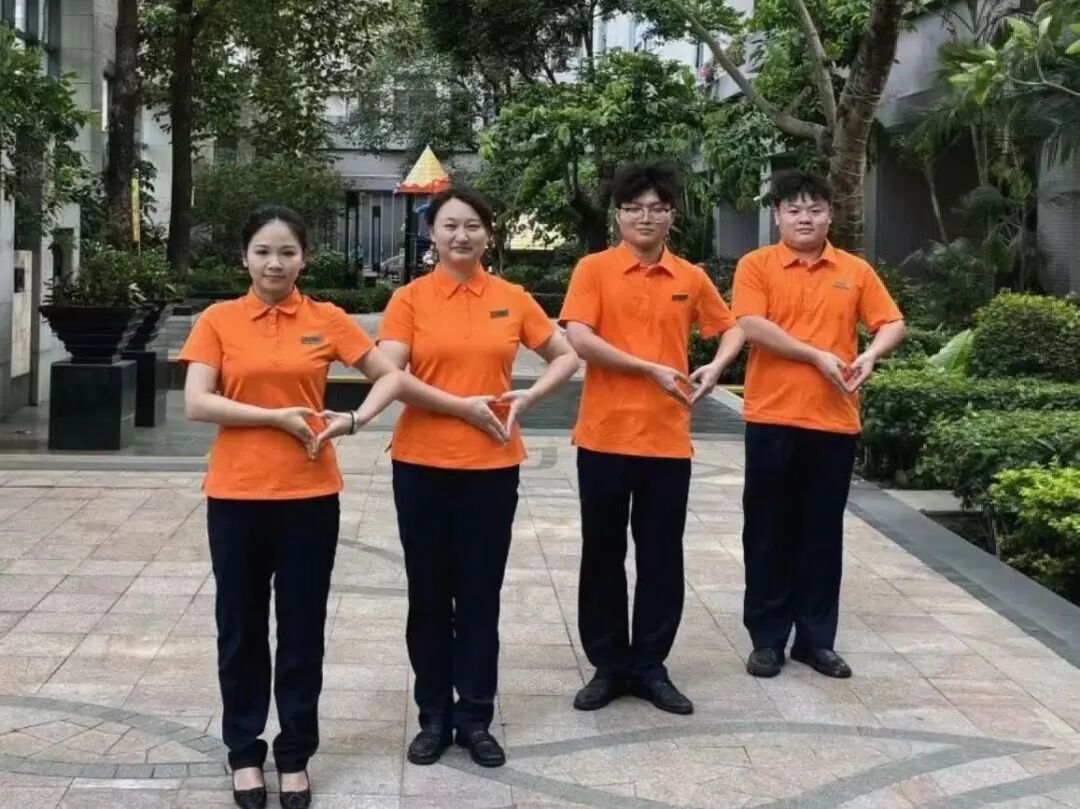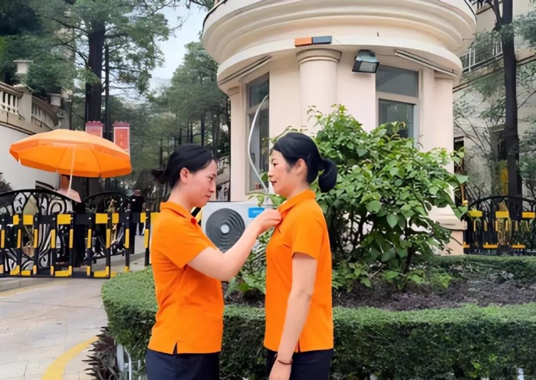 管家服装全面升级,从视觉上带来不一样的体验,鲜明的橙色让管家成为园区里一道亮丽的风景线,正如一群活泼的“橙精灵”在守护着我们美丽的鸿邻社区。