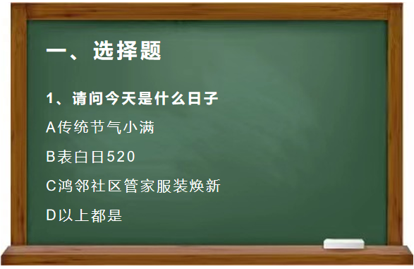看来没有什么问题可以难倒大家,没错,答案就是D。在小满节气、520表白日来临之际,鸿荣源物业住宅项目管家服装全面焕新,一群“橙精灵”在鸿邻社区内闪亮登场。