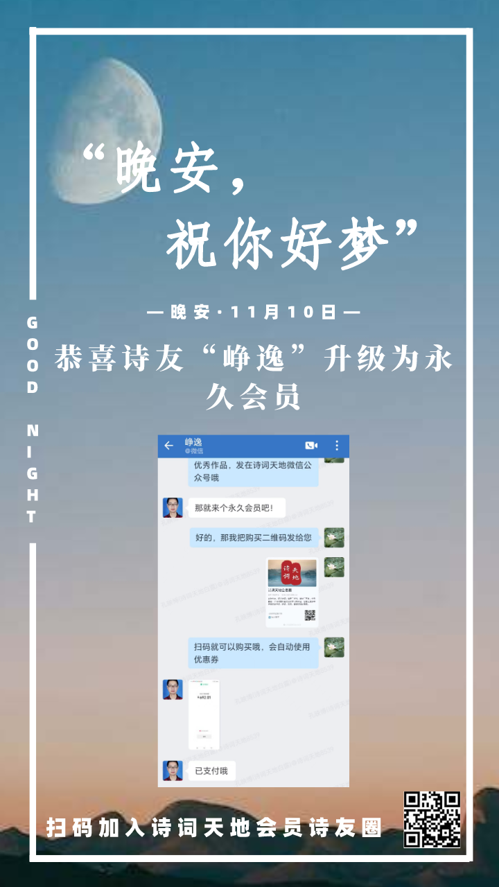 晚安海报丨恭喜“峥逸”诗友升级为永久会员
