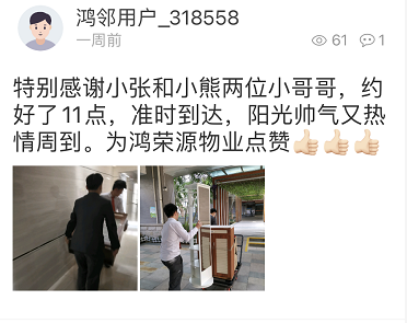 “平时一有需求,你们都及时响应,这次换我们尽一点微薄之力,感谢你们!”9年来,西城雅筑的业主们从不吝啬对鸿荣源物业的赞美与支持。