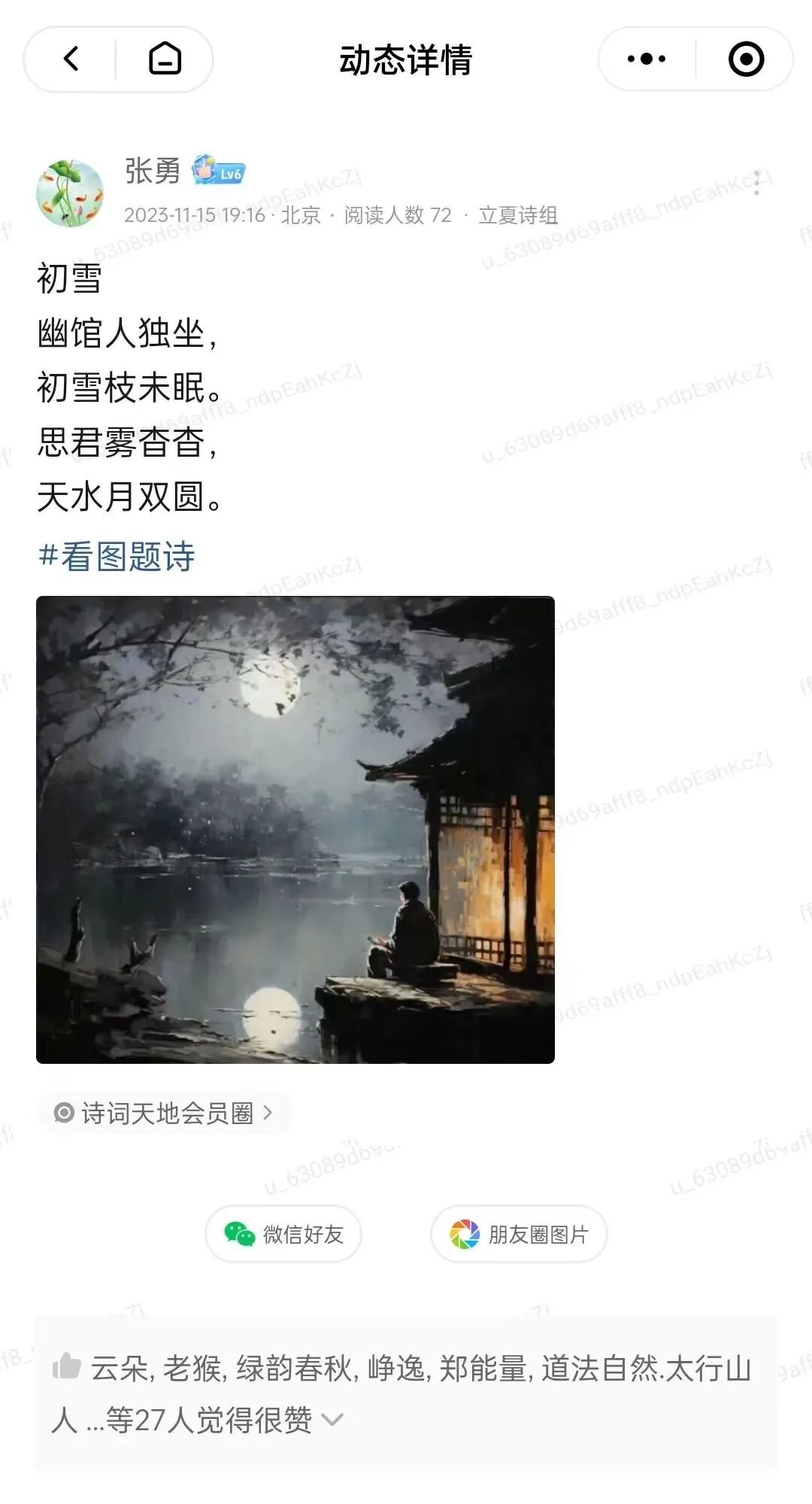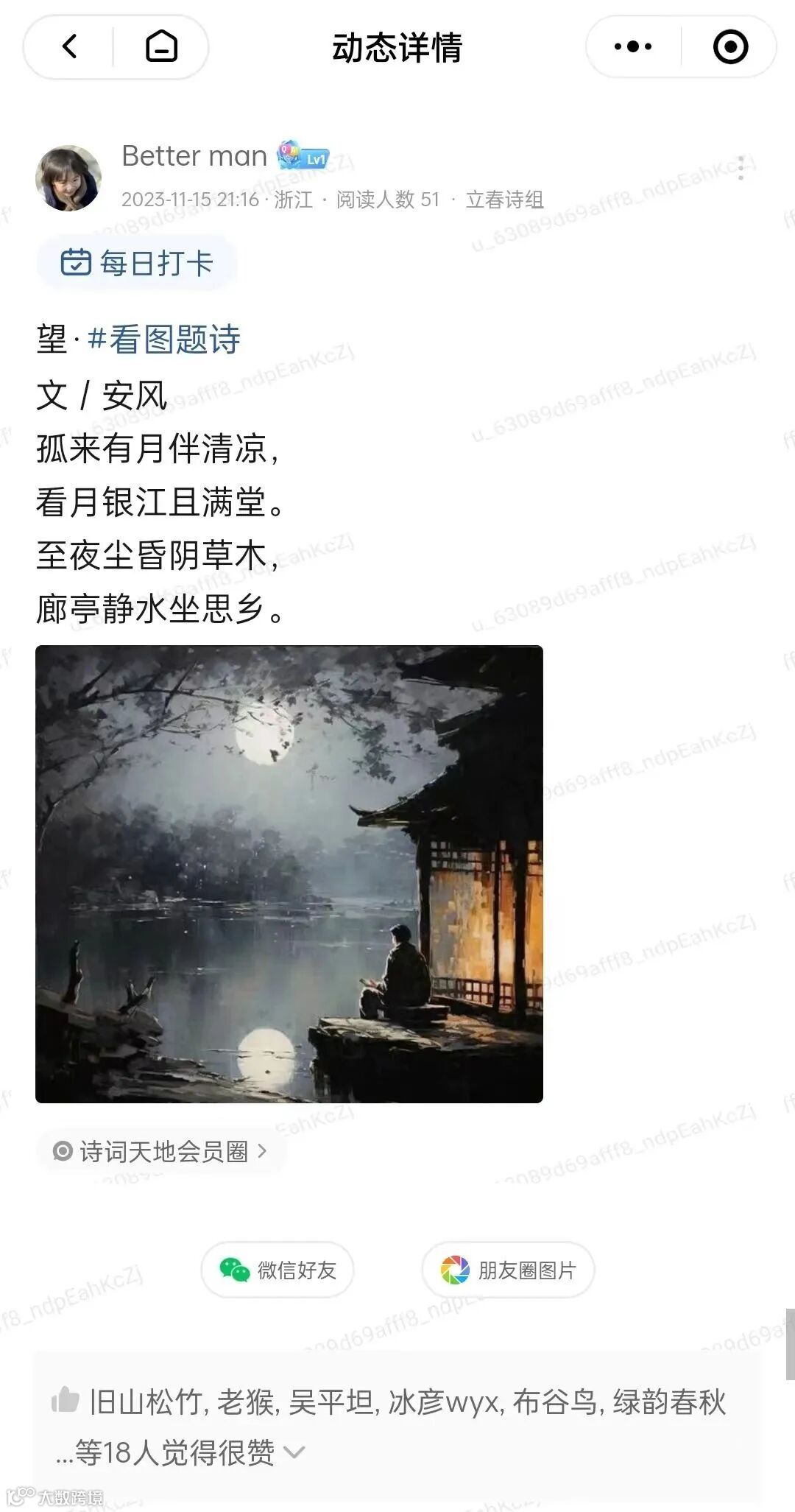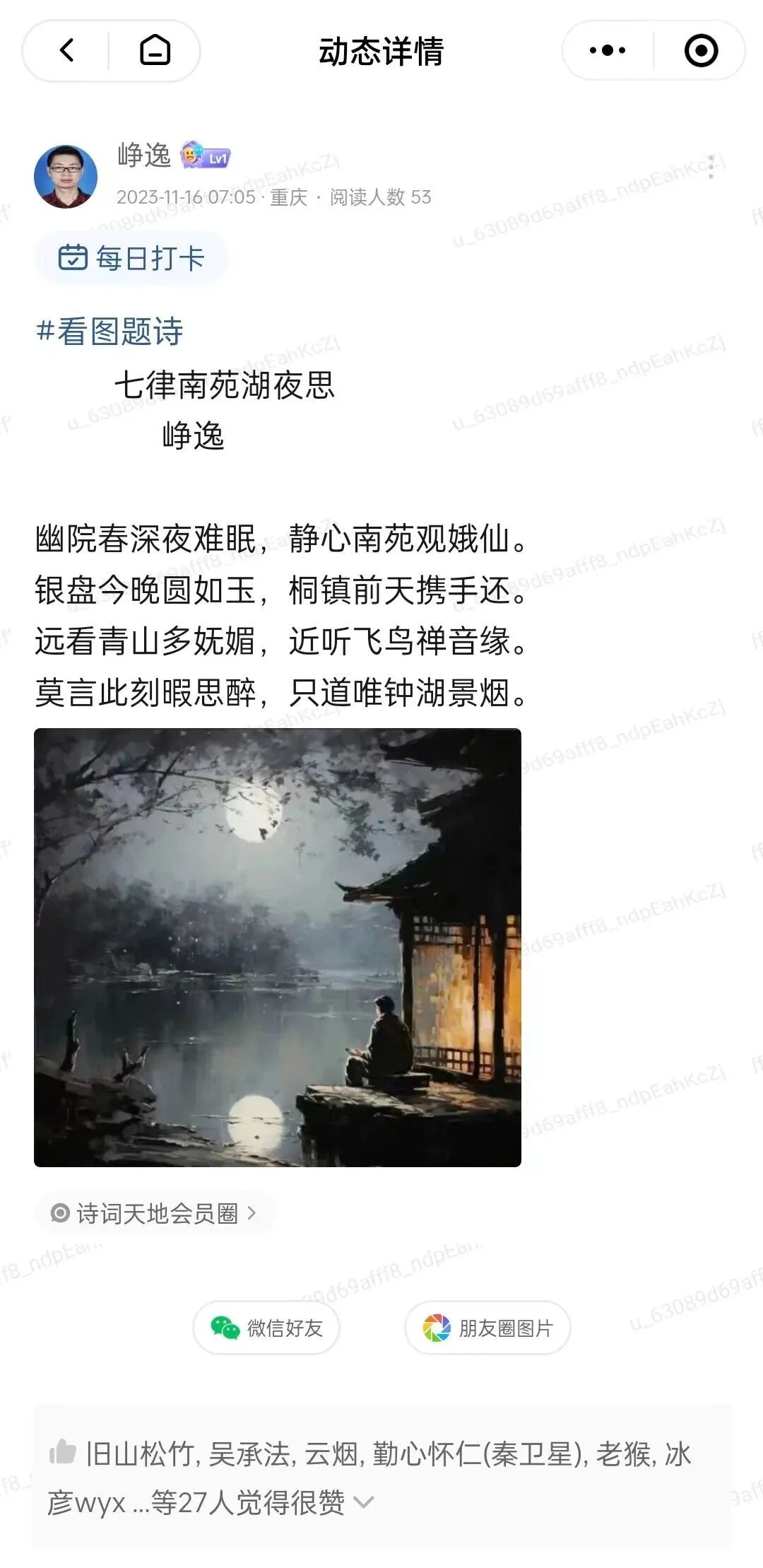 “看图题诗”活动是诗词天地会员圈特有的诗词活动之一,每周一、三、五在诗词天地会员圈举行。