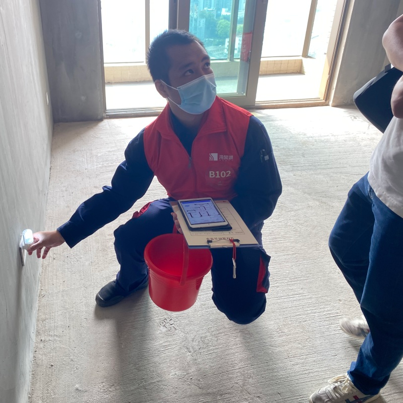 在验房过程中,交房工程师全程陪同业主细心检查和精准测量,从入户的地面、排水到墙面、天花、门窗等,验房过程中任一问题验房师都会给予详尽的解答,让业主安心。