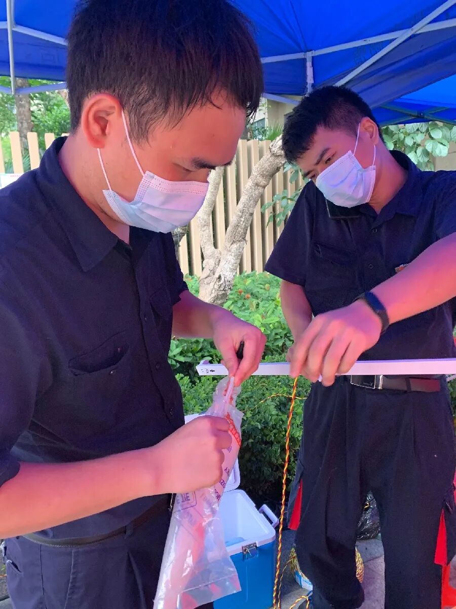 疫情就是命令,防控就是责任。“昨天接到任务后,我们紧急将现场电源接通、把电风扇、桌子、凳子、围挡、警示带全部搬出来,做好现场的布置,配合医护人员进行开展核酸检测工作。”项目经理王朋彪称,接到任务后,服务中心紧急抽调人手布置现场。