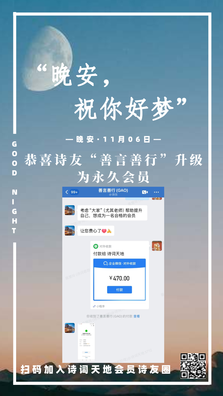 晚安海报丨恭喜“善言善行”诗友升级为永久会员