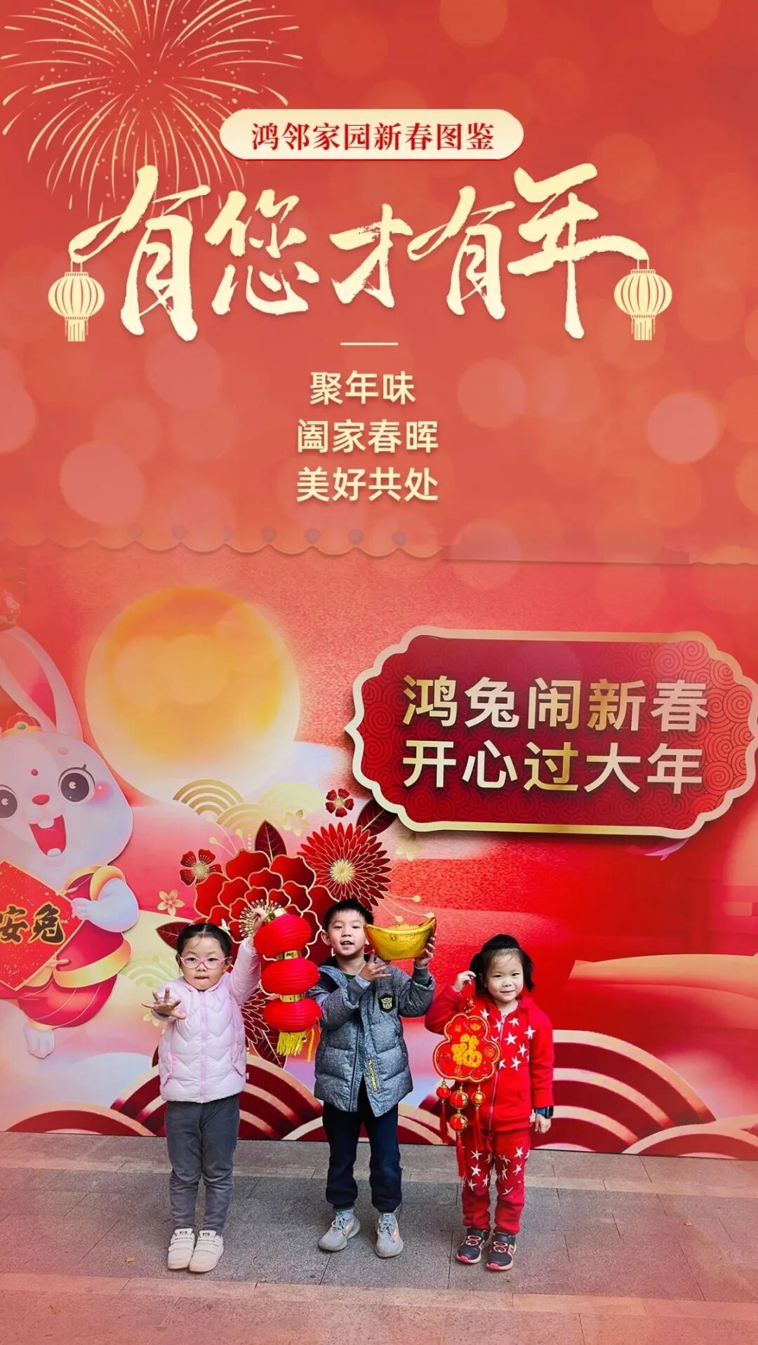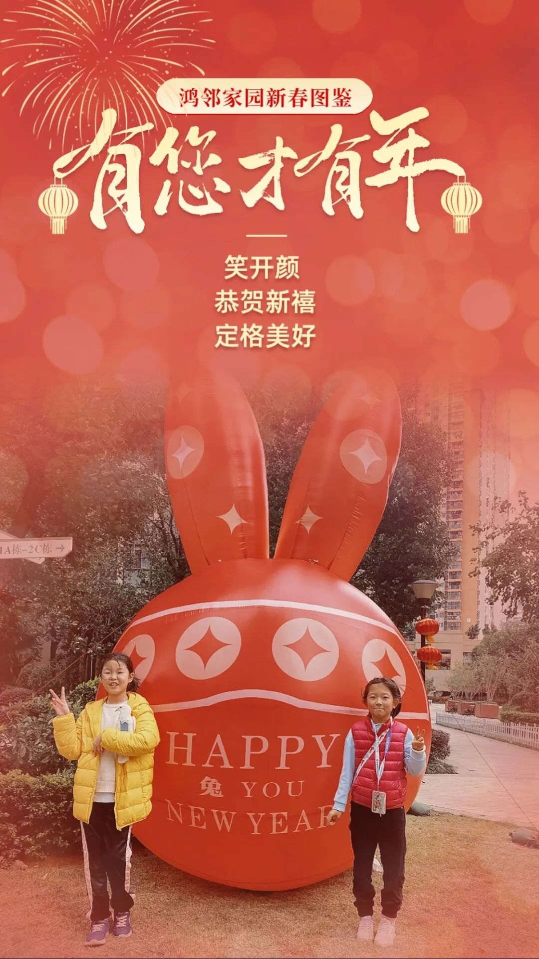 如此重要的节日,自然也少不了鸿荣源物业的匠心巨制,新春鸿兔打卡点上线鸿邻社区,为鸿邻家人们送出最应景的新年祝福。