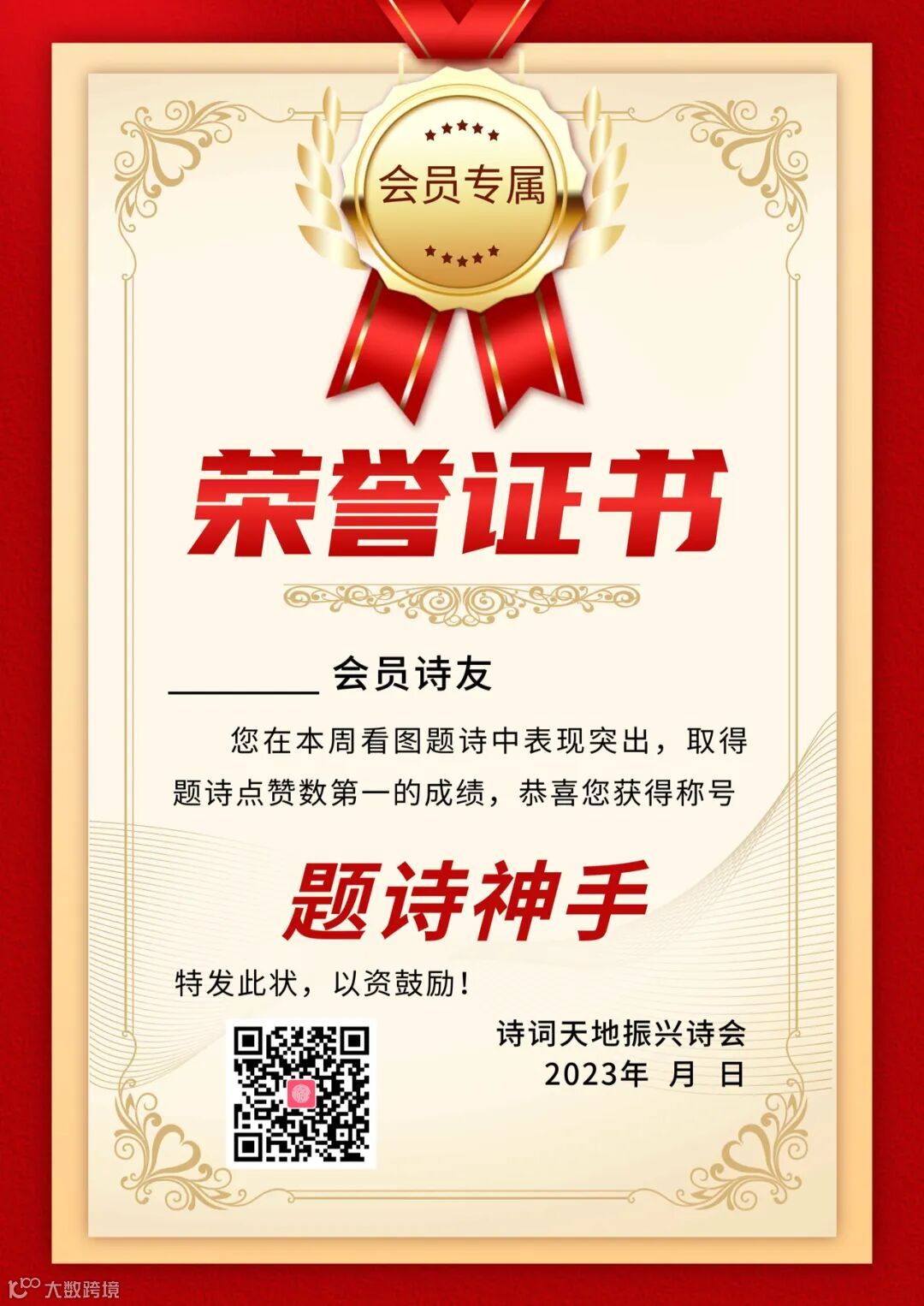 为让会员的优秀作品得到展示,每周将由诗词天地评选委员会评出发布在诗友圈的优秀作品10篇,发布在诗词天地公众号上。