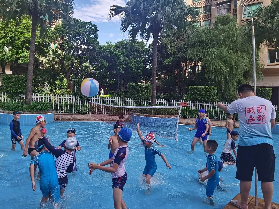 骄阳似火的夏季,没有什么比一场酣畅淋漓的水上作战更加痛快有趣。鸿景园小区举办一场游泳比赛,裁判哨声响起,小孩子们如离弦的箭,奋力向前游去。