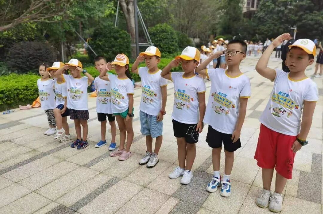 在童军训练营里,一个个调皮捣蛋的淘气包,在项目退伍军人教官的带领下,一丝不苟地进行着站军姿、起步立定、转体动作等列队训练,神气又认真的模样,俨然一个独立的小战士。