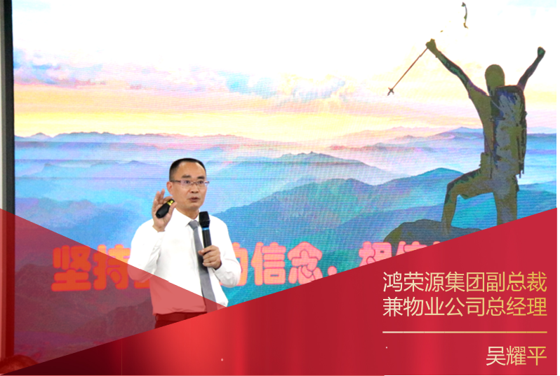 鸿荣源集团副总裁兼物业公司总经理吴耀平以“初心如磐,踔厉向善”为主题,对2021年上半年工作进行总结。吴总从宏观形势、行业发展、集团及公司所面临的内外部环境进行充分解读,他表示十四五规划8次提到物业管理、中央连续四次下发行业相关文件,物业行业的地位达到前所未有的高度。他殷切要求公司各级人员要不断进行认知升维,面对多变的环境,主动寻求改变、突破。