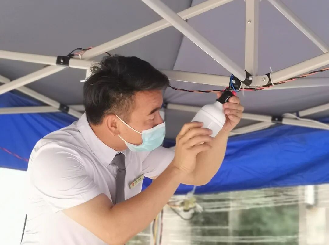 ▲贴上警戒线、接通电源,接下来的三天,尚都花园服务中心将会与所有核酸检测工作人员一起作战。