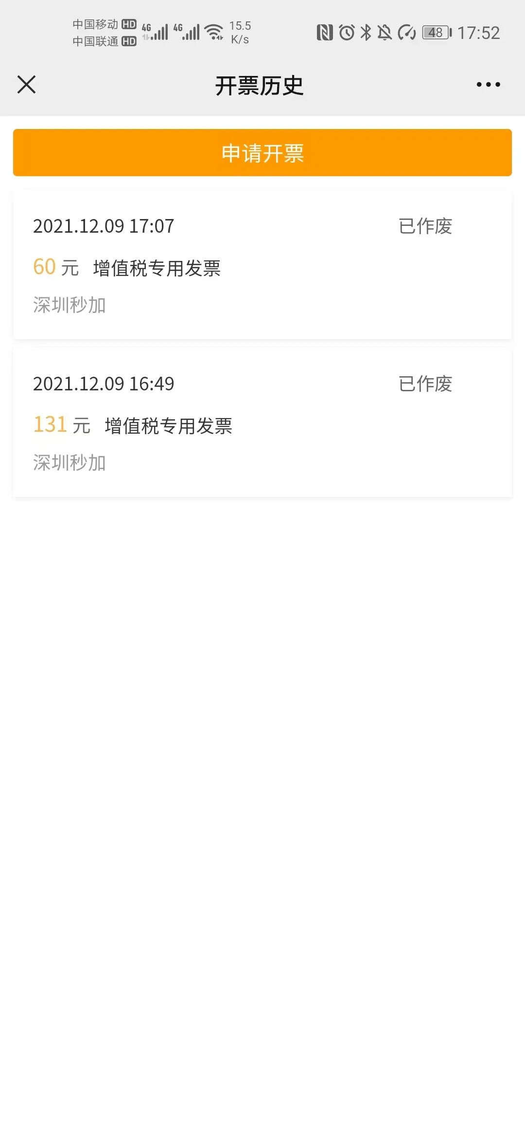 我们在秒加微信公众号后就能找到并开具相关的发票。