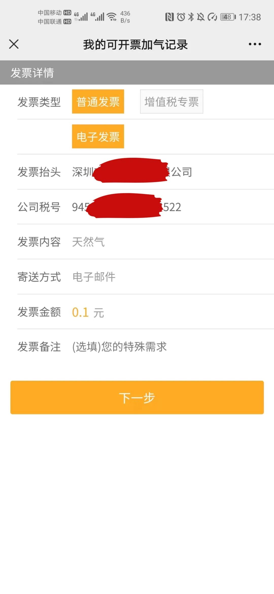 请注意!在填写发票抬头与公司税号的信息时请仔细核对信息,确认无误后再提交下一步。