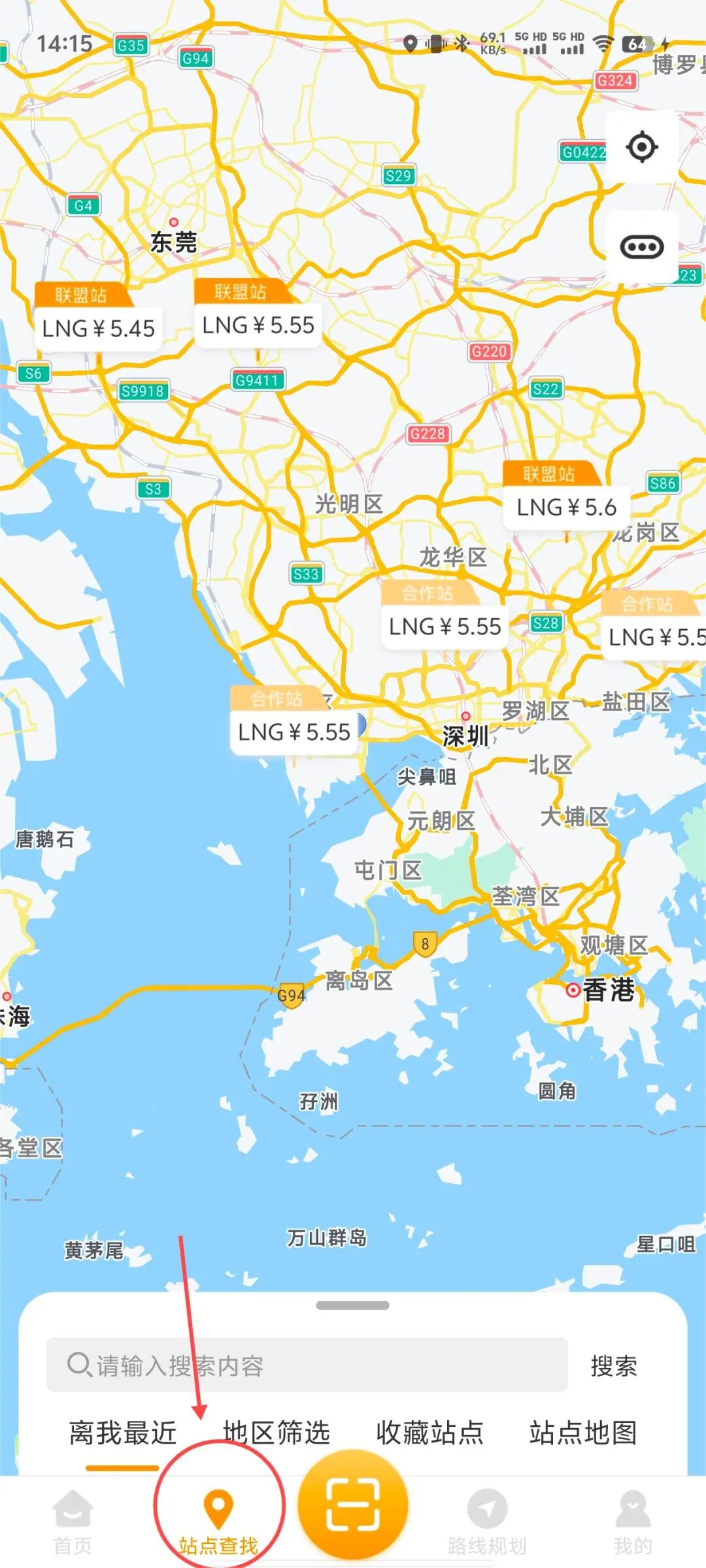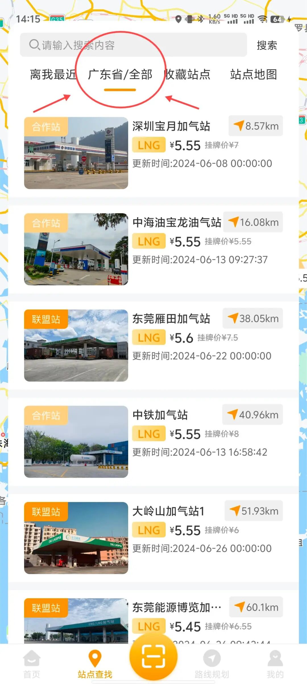 点击【站点地图】,可以进行地区筛选,也可手动放大缩小地图进行查找站点!方便快捷!
