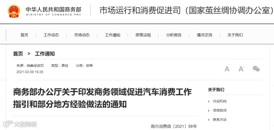 近日,商务部印发了《商务部办公厅关于印发商务领域促进汽车消费工作指引和部分地方经验做法的通知》。