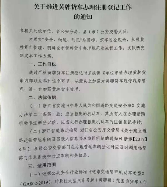 近日,浙江“黄牌货车办理登记注册”出台新要求,货车上牌必须需满足以下条件,具体规则如下: