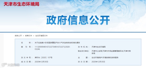 2020年底,天津市生态环境局发布的《关于实施国六阶段国家重型汽车大气污染排放标准的公告》,公告中指出,7月1日前已销售的国五车可于10月1日前上牌登记。
