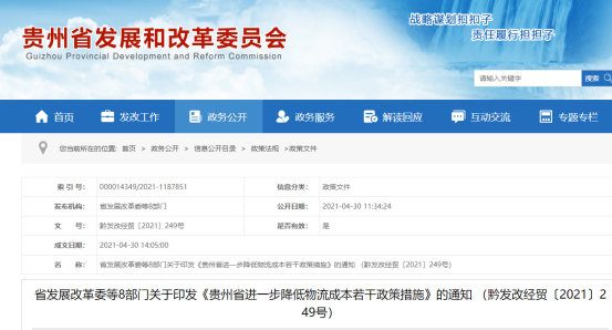 今年四月份,贵州省发展和改革委员会发布了《贵州省进一步降低物流成本若干政策措施》,文件当中提出许多要点,其中不仅包括缩小货车限行时段、减少高速费、轻微违法口头警告等政策。