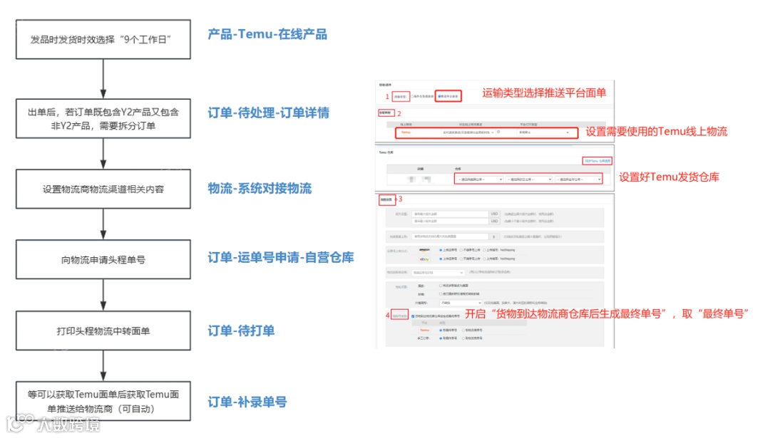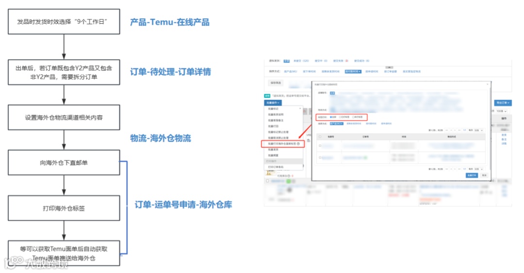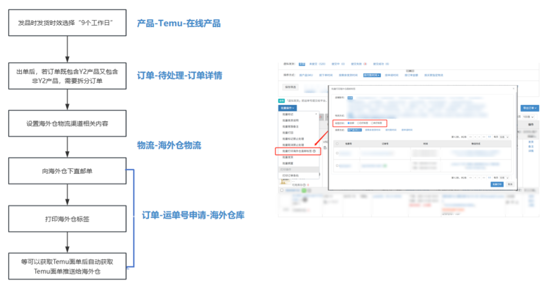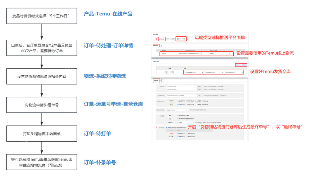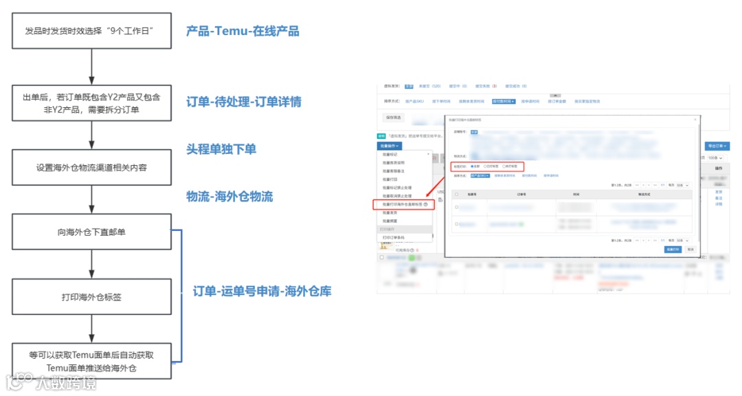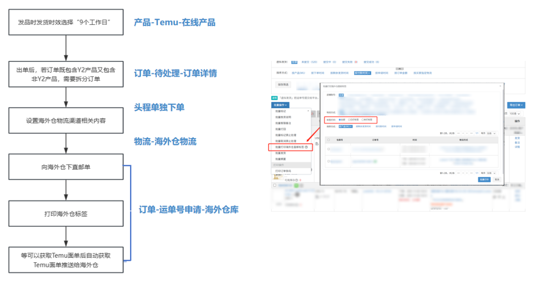 货品已备货美国本土,可以等订单生成且能打印面单(如6天后),直接申请TEMU面单,并推送给海外仓,由他们贴单出库,尾程交给海外仓处理。