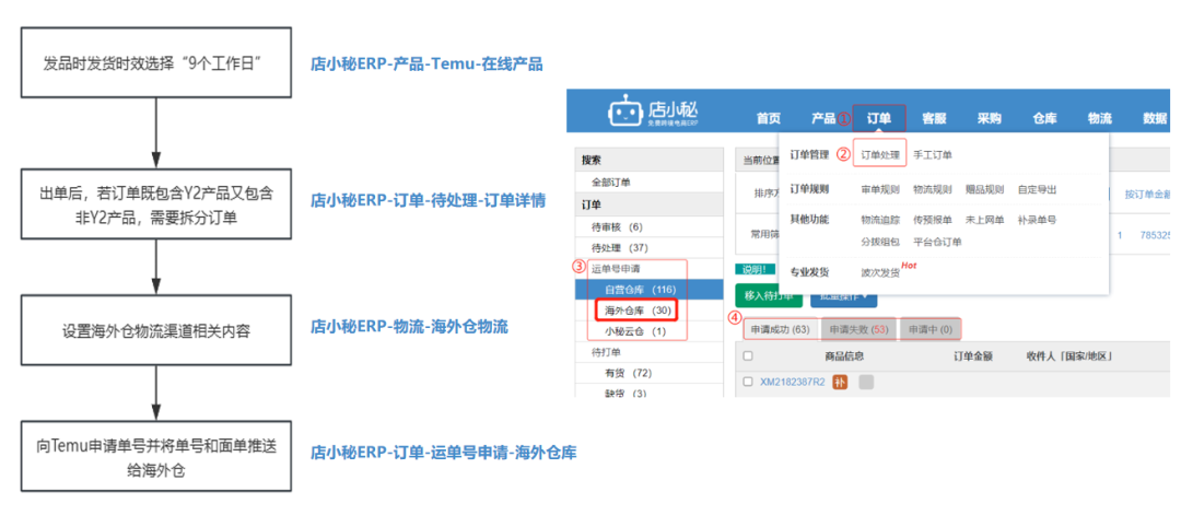 凭借强大的跨境生态整合与研发能力,店小秘ERP为TEMU卖家提供Y2订单全模式解决方案,从面单申请、打印、推送到状态追踪,卖家在ERP系统内就可以一站式完成,让订单交付流程更简单、店铺管理更轻松。
