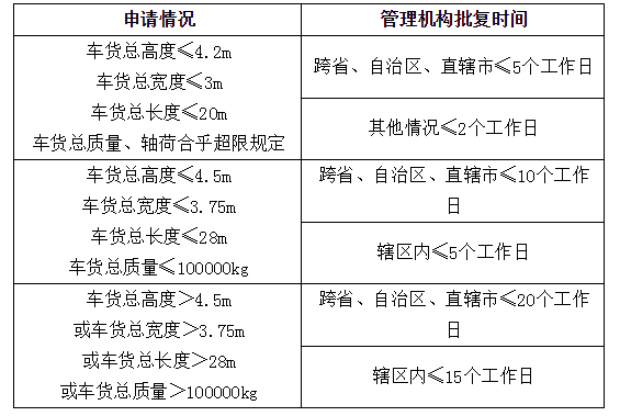 *车货总高度从地面算起超过4.5米,或者总宽度超过3.75米,或者总长度超过28米,或者总质量超过100000千克,以及其他可能严重影响公路完好、安全、畅通情形的,需提交记录载货时车货总体外廓尺寸信息的轮廓图和护送方案。